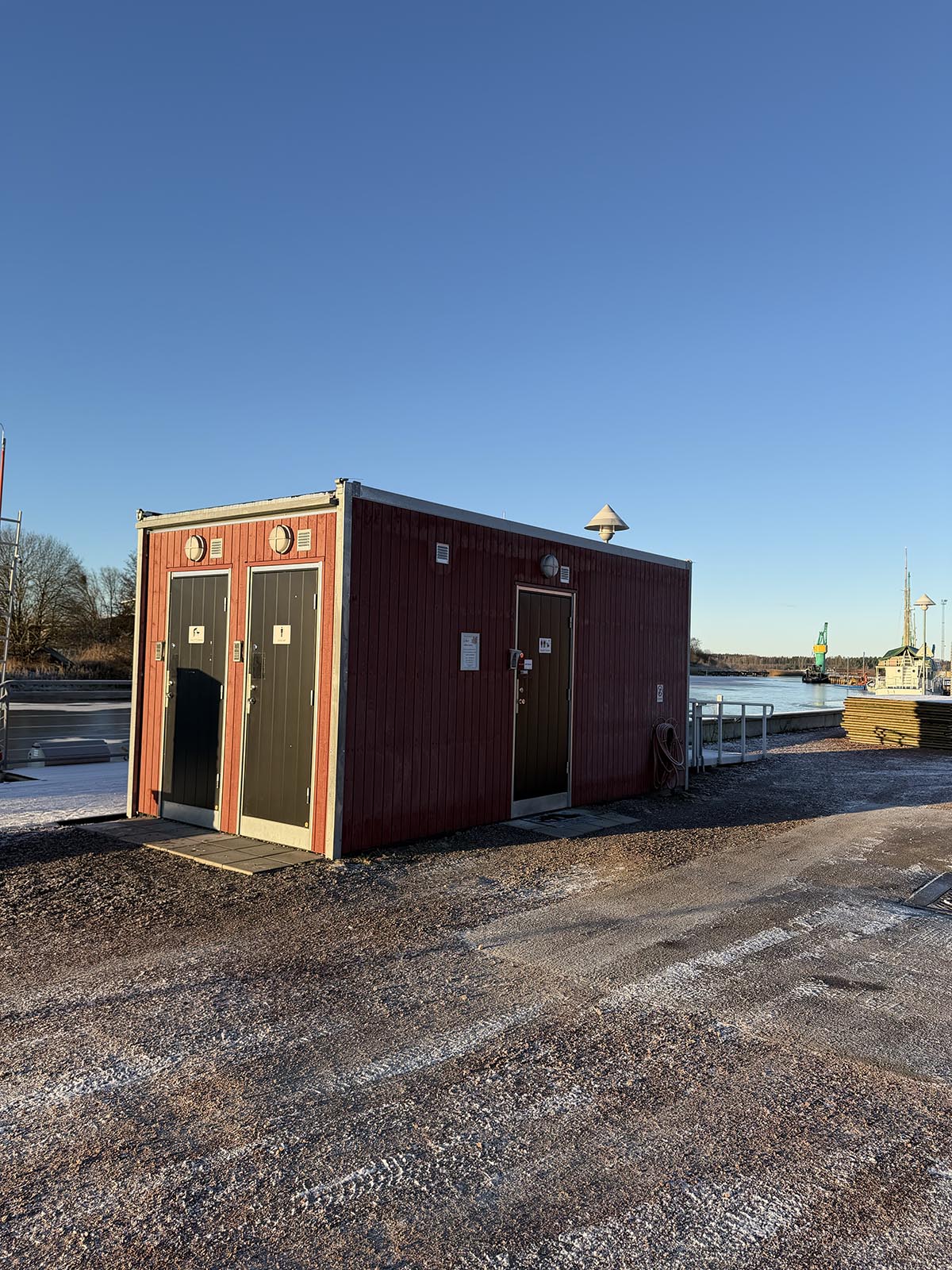 I bortre änden av området finns ett litet hus med toaletter och latrintömning. Framför huset finns även gråvattentömning.
