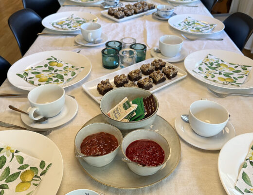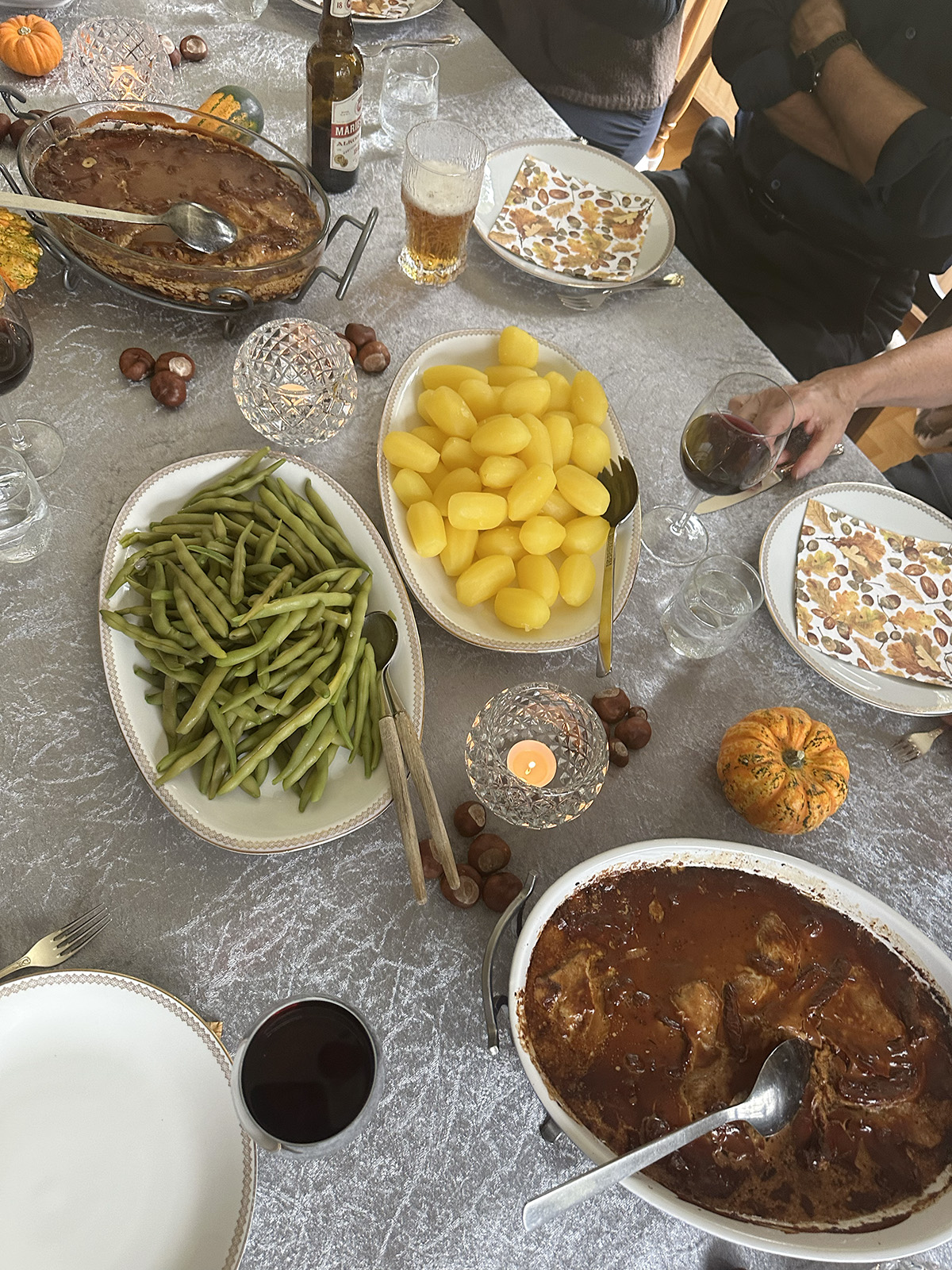 Med först två timmars prat på engelska med fyra personer runt bordet (eftersom jag inte är så bra på tyska) och sen fyra timmars samtal med elva personer runt bordet som pratade svenska, tyska, engelska och franska så var jag heeeelt slut i huvudet efteråt. Men det var såklart väldigt trevligt, och gott! Och kul med besök från Zürich.