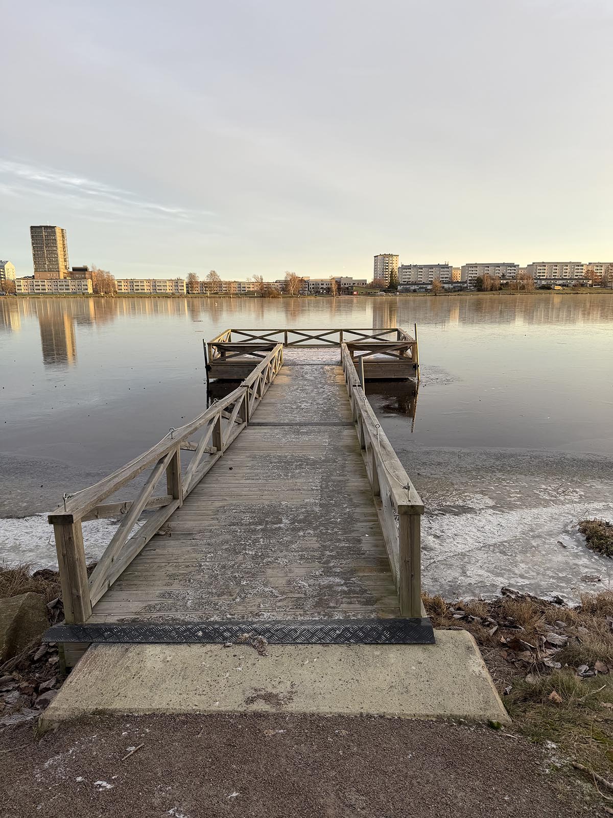 Den enda servicen som finns, utöver elen, är soptunnor. Platsen är dock väldigt fin precis intill Vänern. En ”service” nog så värdefull. Här en vacker brygga.
