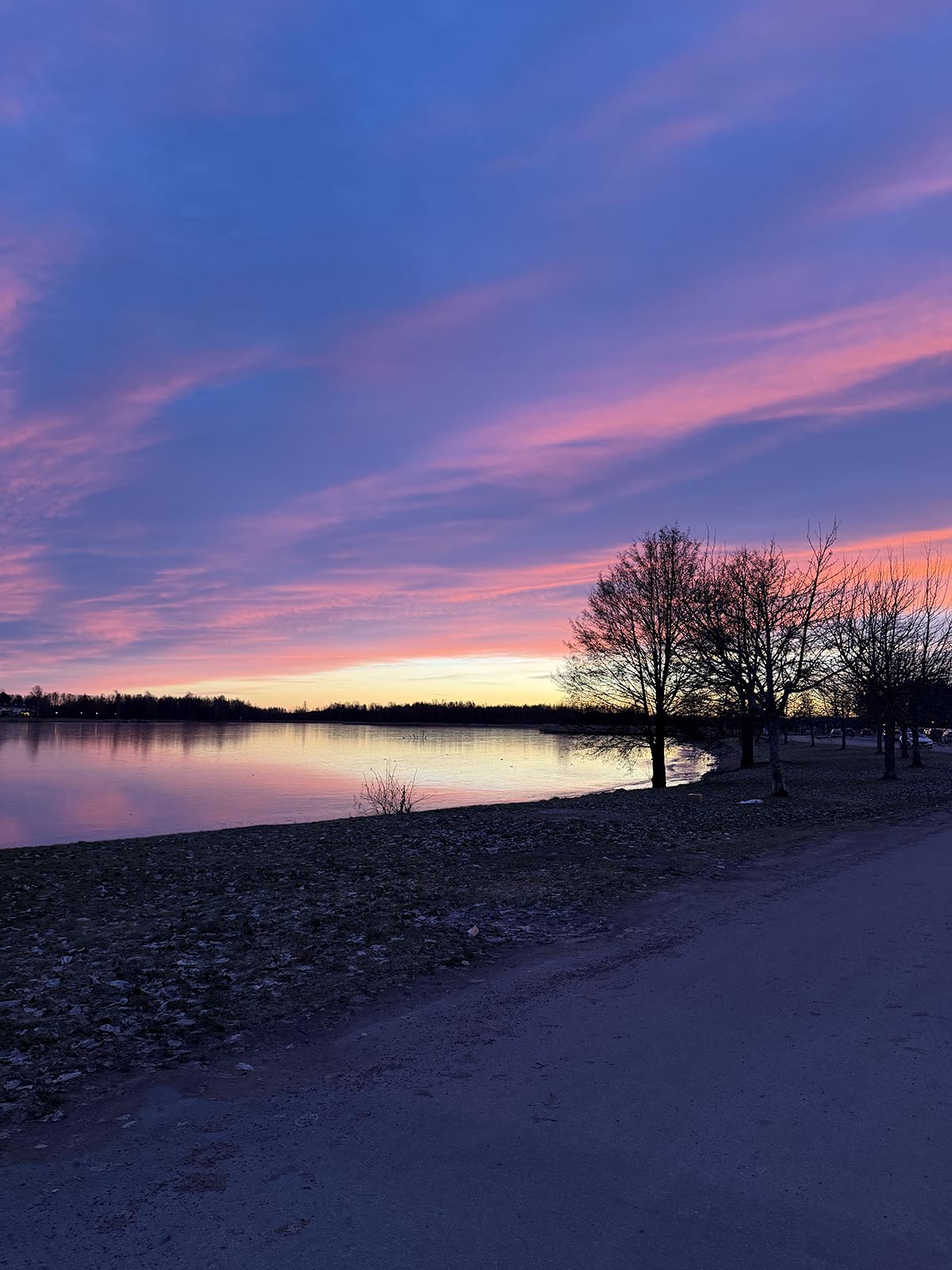 Vi kom dit vid lunchtid. Förhållandevis sent för att normalt sett ha en chans att få en gratisplats med det läget. Men det var tydligen inte så populärt de här dagarna så det var bara en bil på plats före oss. Vi tog en promenad i Mariebergsparken. Här kan du läsa om det. Och här kan man läsa på parkens egen webbplats. Senare på eftermiddagen fick vi en fantastisk solnedgång över vattnet.