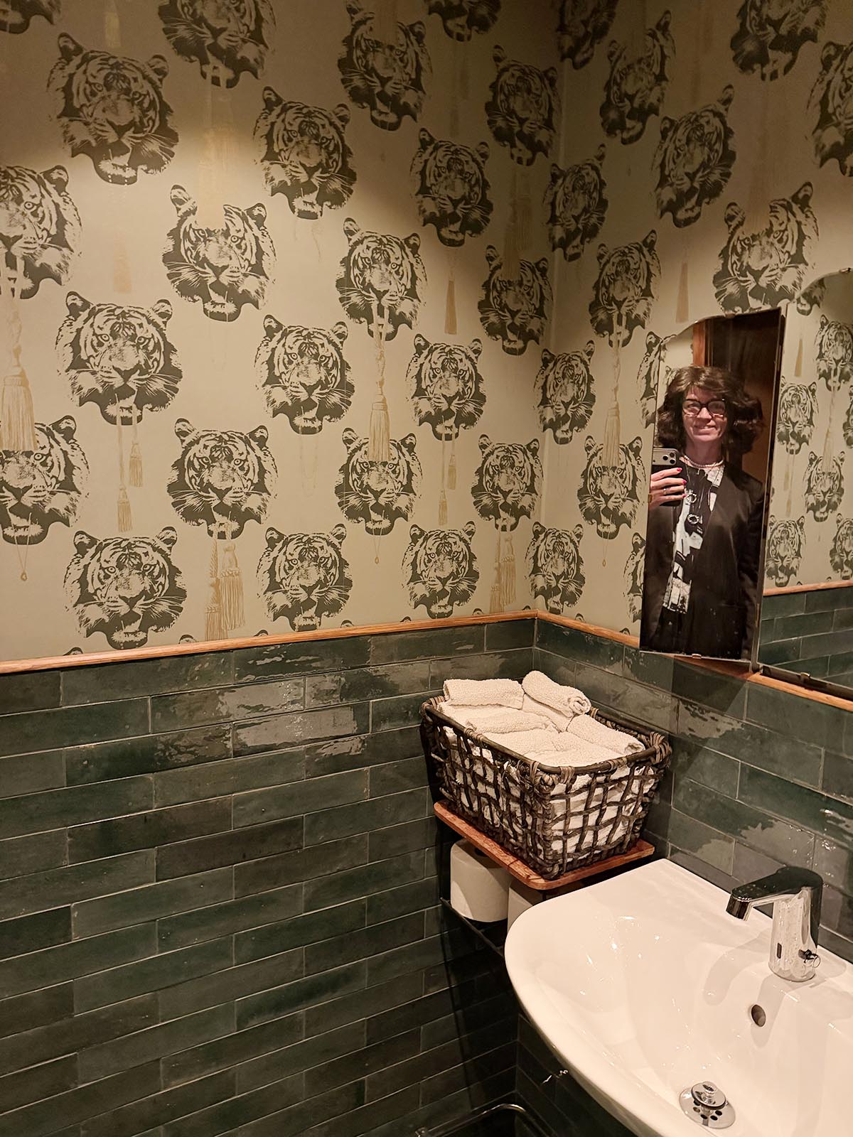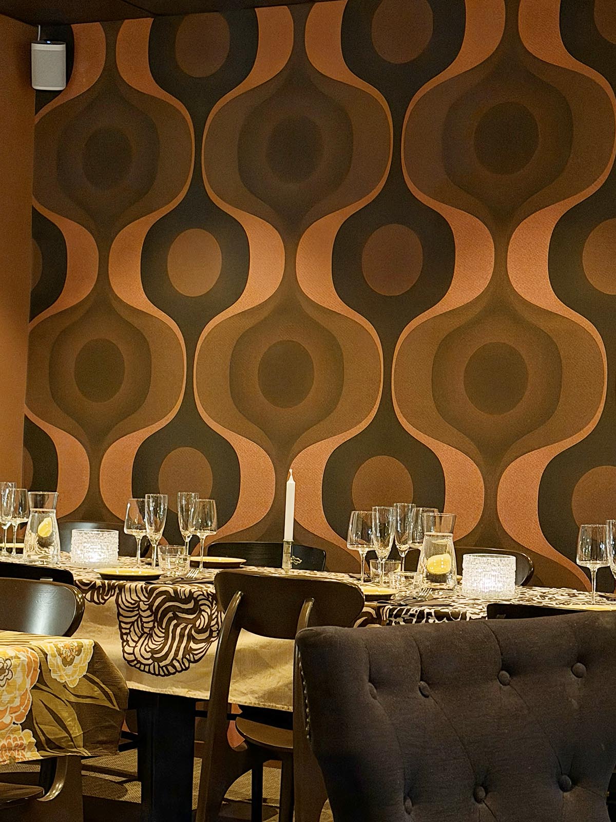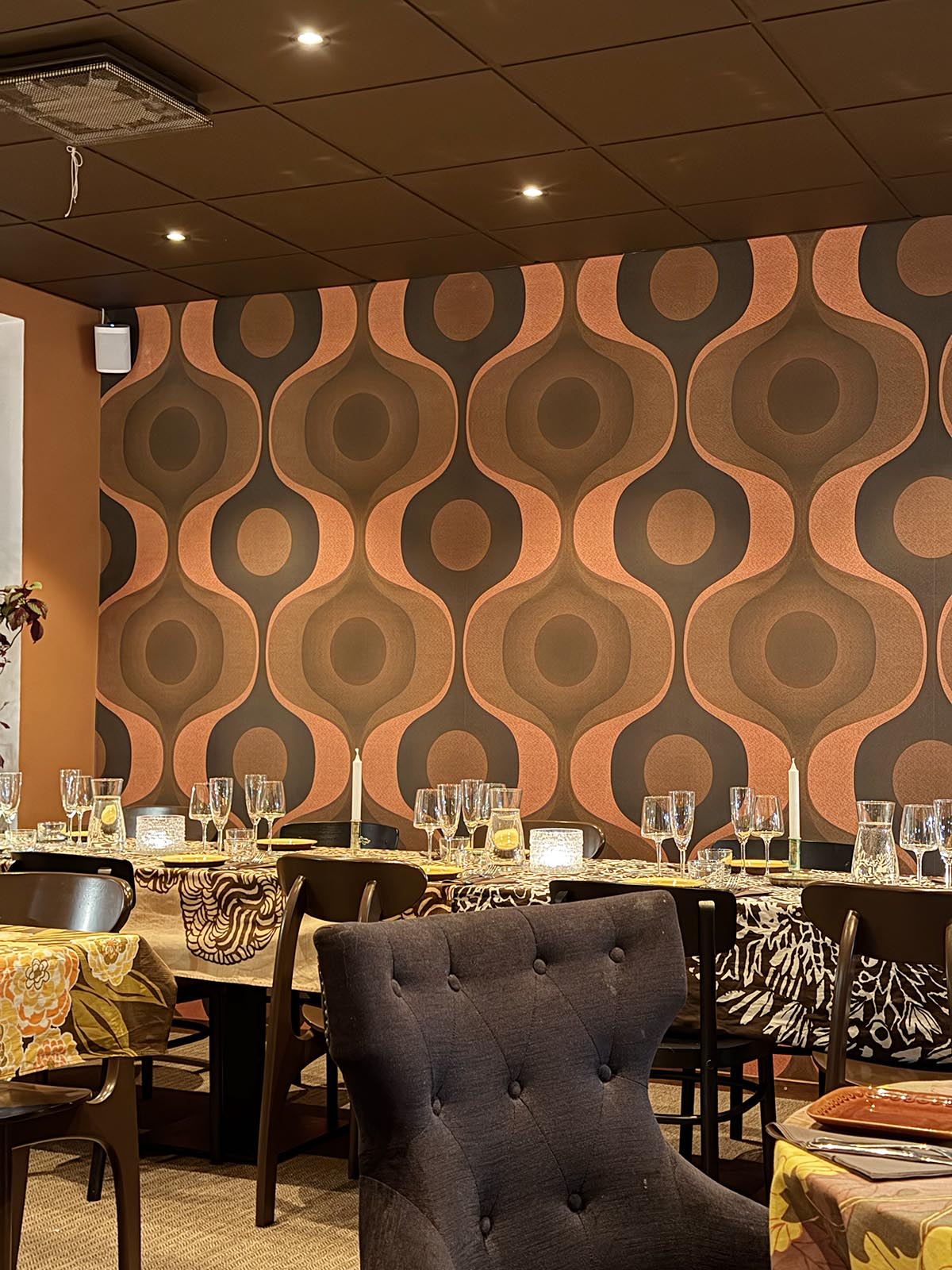 Väldigt ”uppfriskande” med inredningen. Det är verkligen inte något vi sett på nåt uteställe förr. De flesta andra är same same. När jag ändå pratar om inredningen så måste jag nämna att vi såg att de, förutom ljuddämpande plattor i taket, satt upp ljuddämpande ”kuddar” på väggen här och där. Det är sånt som jag uppskattar väldigt mycket, som ljudkänslig efter utbrändhet. På restaurangen fanns två större sällskap på 10-12 personer vardera, plus ett antal par som vi, men ändå blev jag inte påverkad av ljudnivån. Tacksamt!