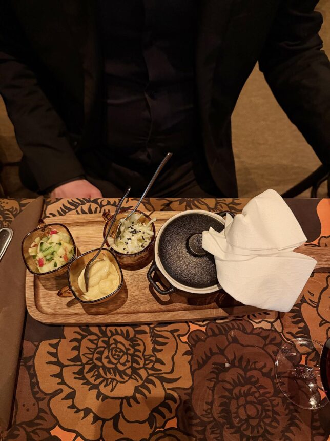 Servitrisen visste vad hon gjorde. Hon lotsade oss genom kvällen, höll koll på oss, småpratade och servade oss på en perfekt nivå. Hon gick också ut i köket för att prata med kockarna om de olika rätterna kopplat till min allergi. Många gånger märker jag att servitriser/servitörer chansar lite. ”Jag tror att…” eller ”i den här rätten är det nog inte…” osv. Men den här tjejen gick ut direkt. Uppskattas!