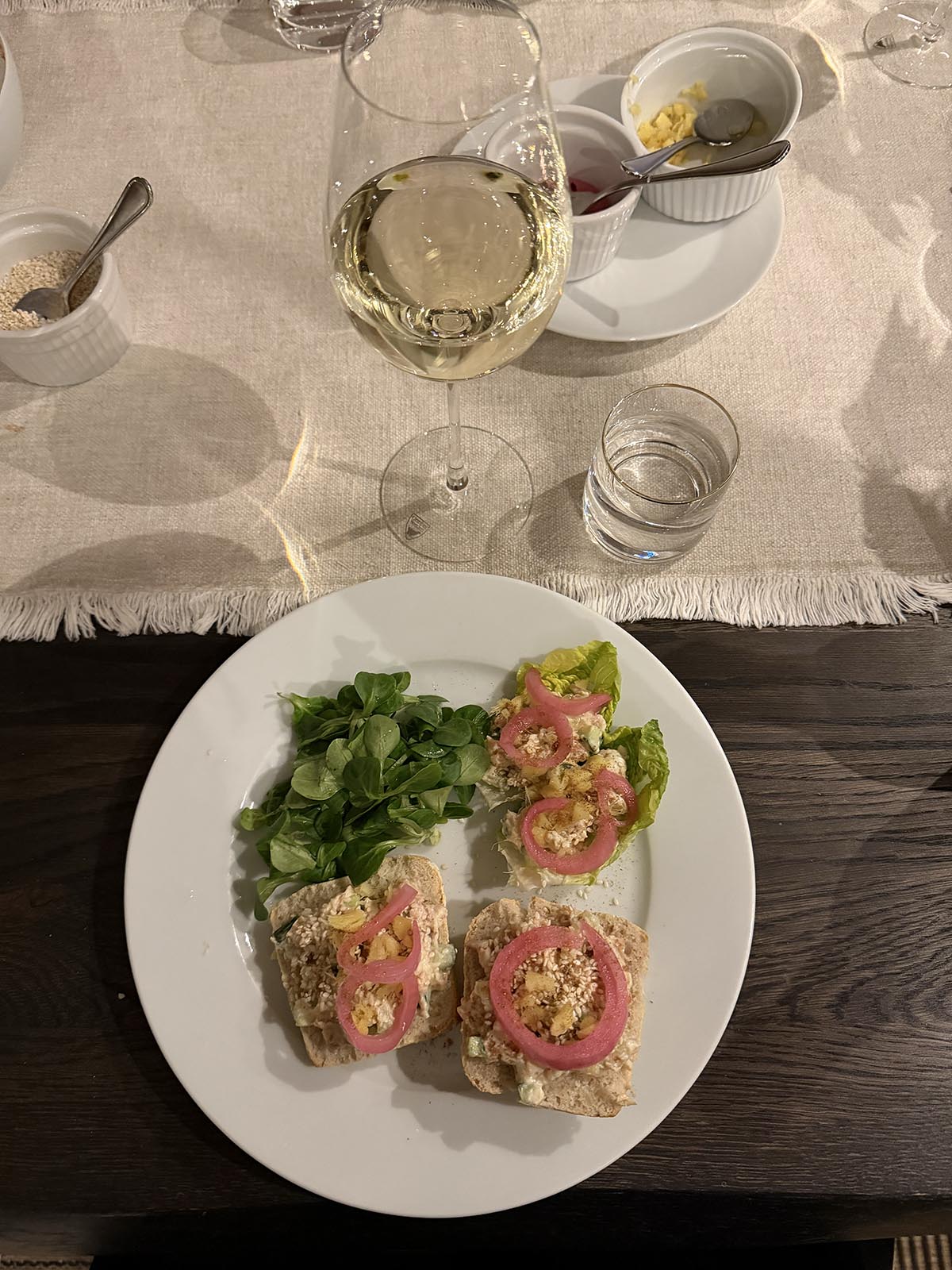 Så där ja. Bordet kunde återigen kläs med duk och lite pynt igen. Nu kan vi andas ut ett tag. Vi lyckades i tid utan att bordet sprack. Nu MÅSTE vi ta tag i att olja matbordet snabbare nästa gång.