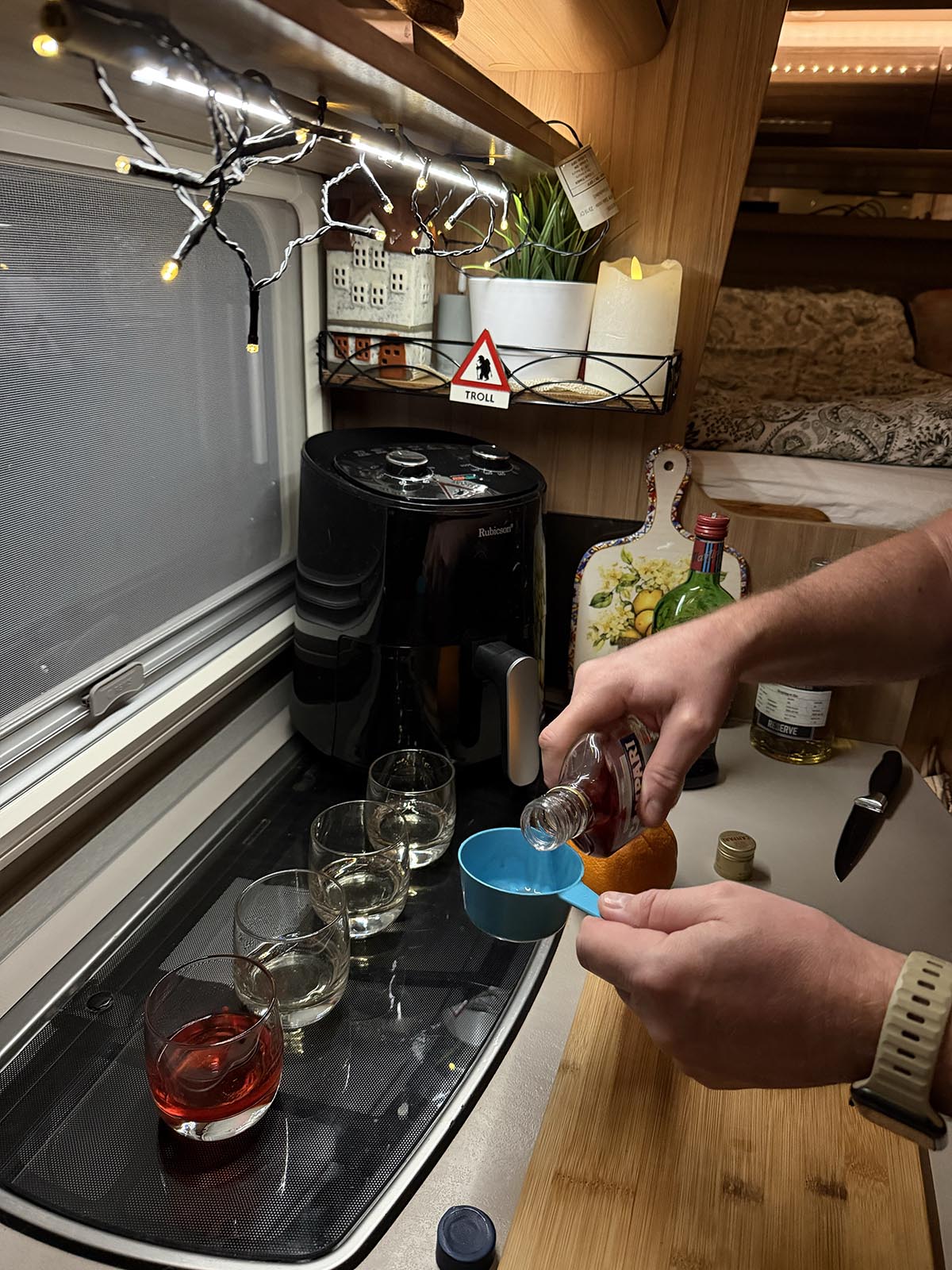 De hade en riktigt mysig och trevlig liten husbil. Precis som kvällen innan så blev klockan plötsligt 2 och det var hög tid att krypa i säng.