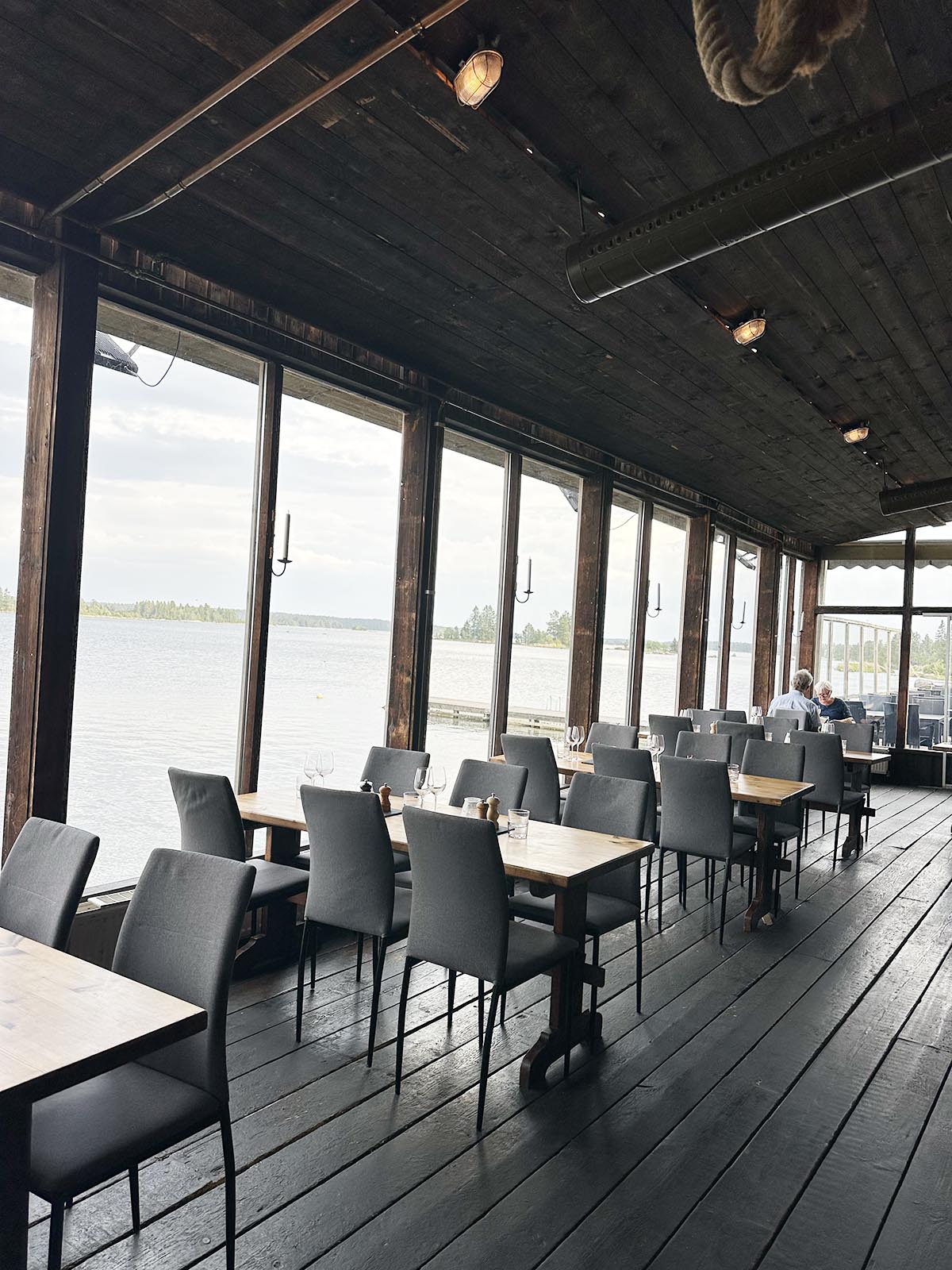 Det finns dels en vanlig restaurangdel inomhus och också en del som är den ingassade bryggan. På fredagen då vi kom dit passade jag på att springa runt och fota eftersom det inte var så mycket folk. Riktigt charmig miljö.