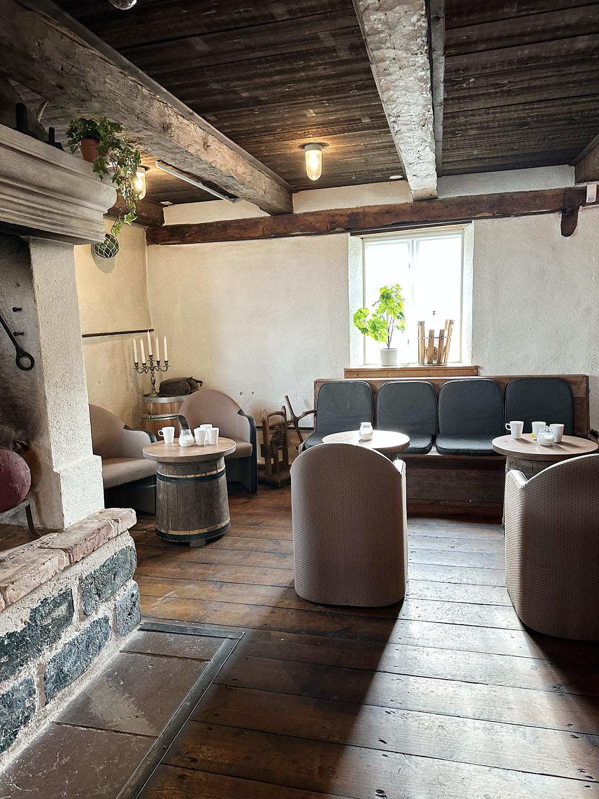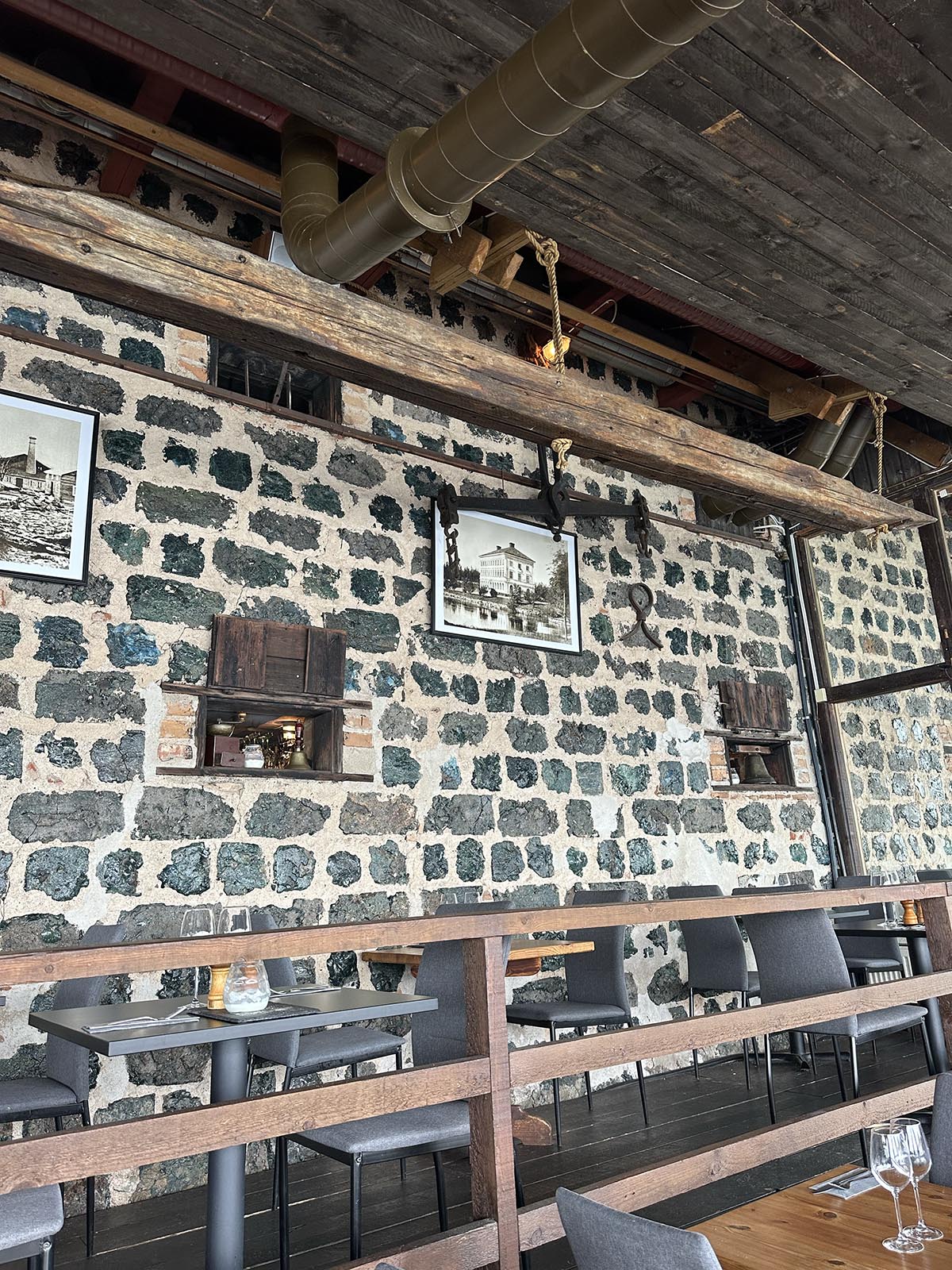 Krogen är inredd i den gamla byggnaden från 1870-talet, där man tidigare lagrade stångjärn och säd.