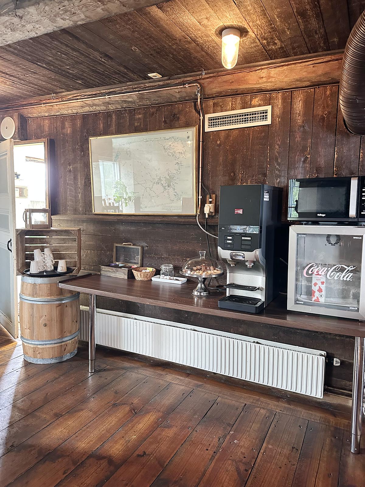 Först dagen efter kom vi på att vi totalt glömt bort husbilsloungen inne på krogen eftersom vi suttit inne i husbilen och kurat medan det regnade och blåste utanför. Om man står på ställplatsen med husbil så får man hänga i loungen och får tillgång till gratis kaffe. Hur kunde vi glömma det, trots att vi var där och fotade kvällen innan. Det hade säkert varit jättetrevligt att hänga där under eftermiddagen tillsammans med likasinnade,