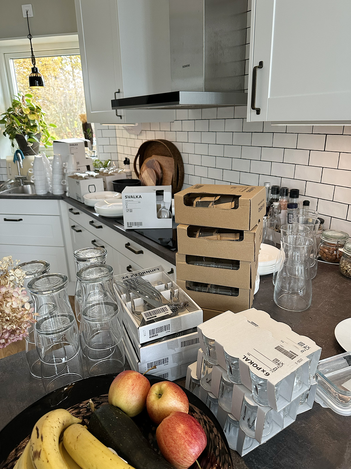 Jag packade upp allt, räknade igenom allt och diskade igenom allt. Nu får det stå upp-och-ner i plastbackar i två veckor så klarar det sig. Skönt att sätta check på saker. Jag har också tvättat stolsdynor och badrumsmattor. Provat dukar och köpt ett par nya. Börjat fundera på dekoration och blommor. Det är så roligt att planera för fest. Jag ser jättemycket fram emot kvällen då familj och några vänner kommer för att fira med mig. Över själva födelsedagen reser vi bort på en långweekend. Det ser jag också fram emot jättemycket.