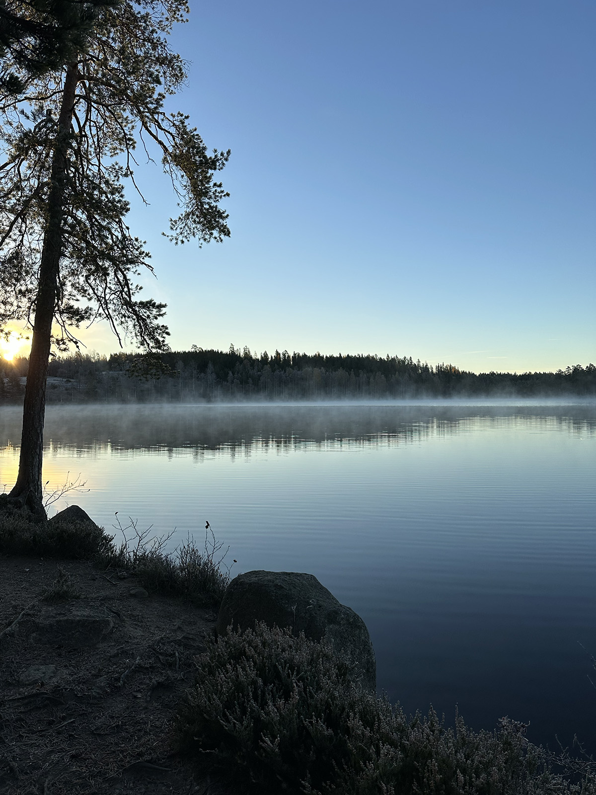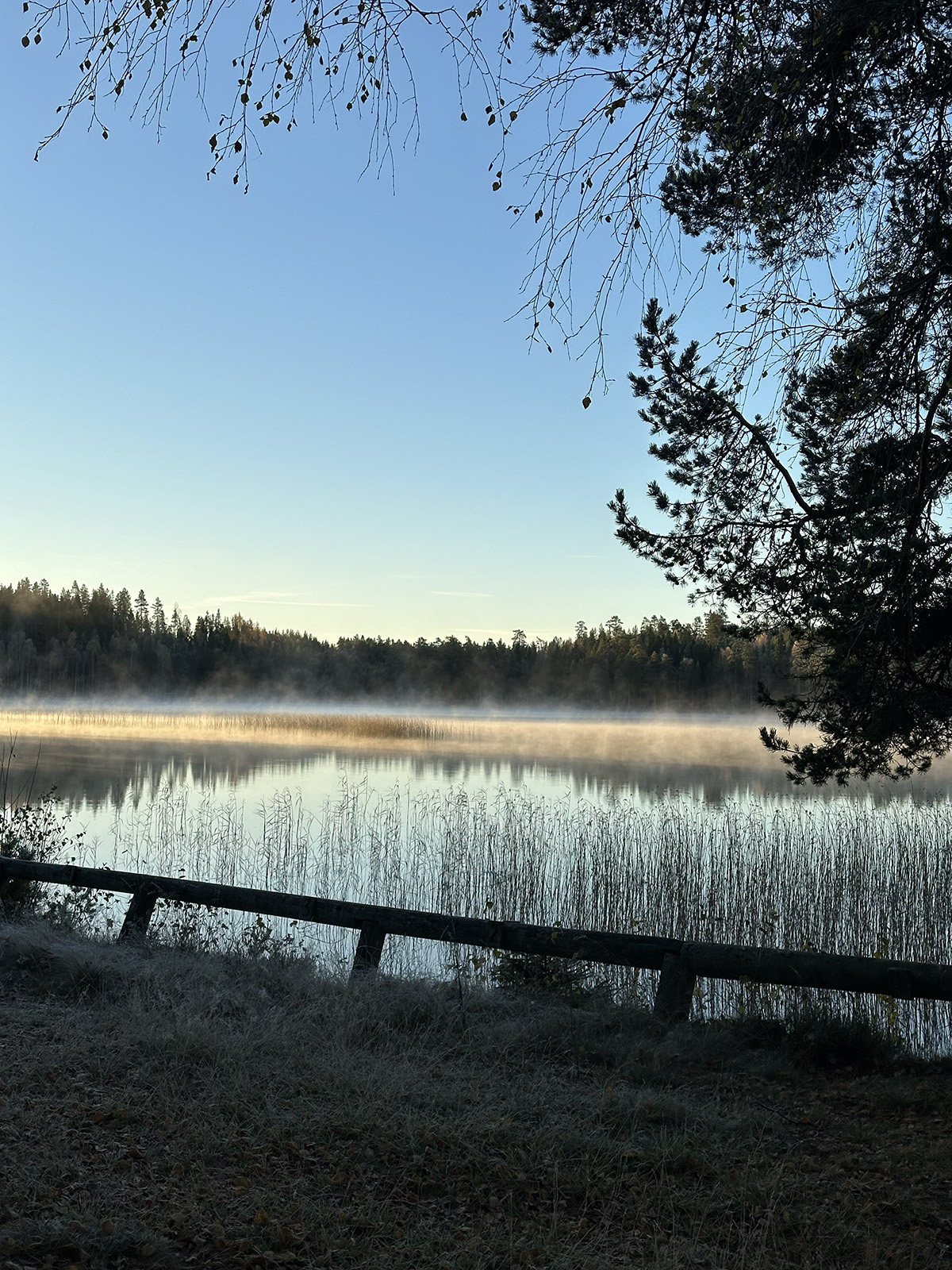 Just denna morgon tampades sjöröken med solstrålarna. Eller var det kanske så att de samspelade för att bjuda på det bästa?