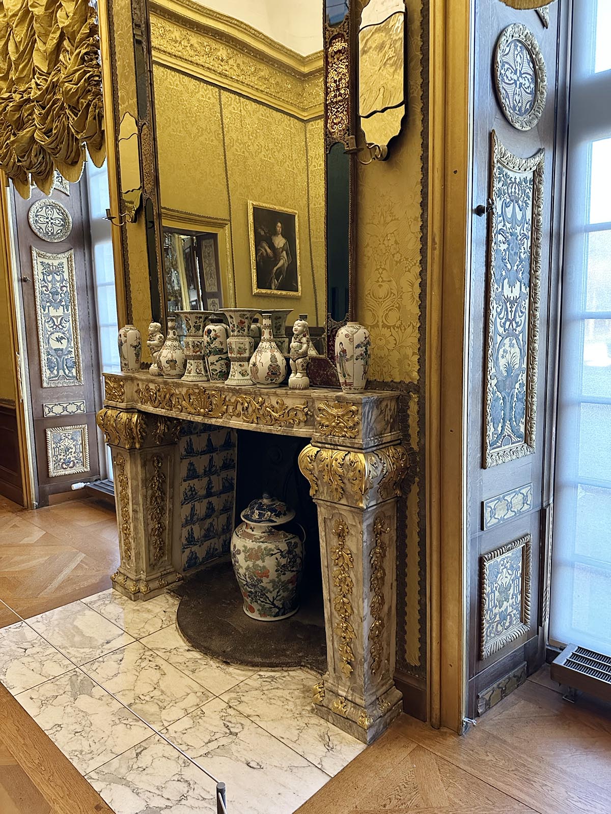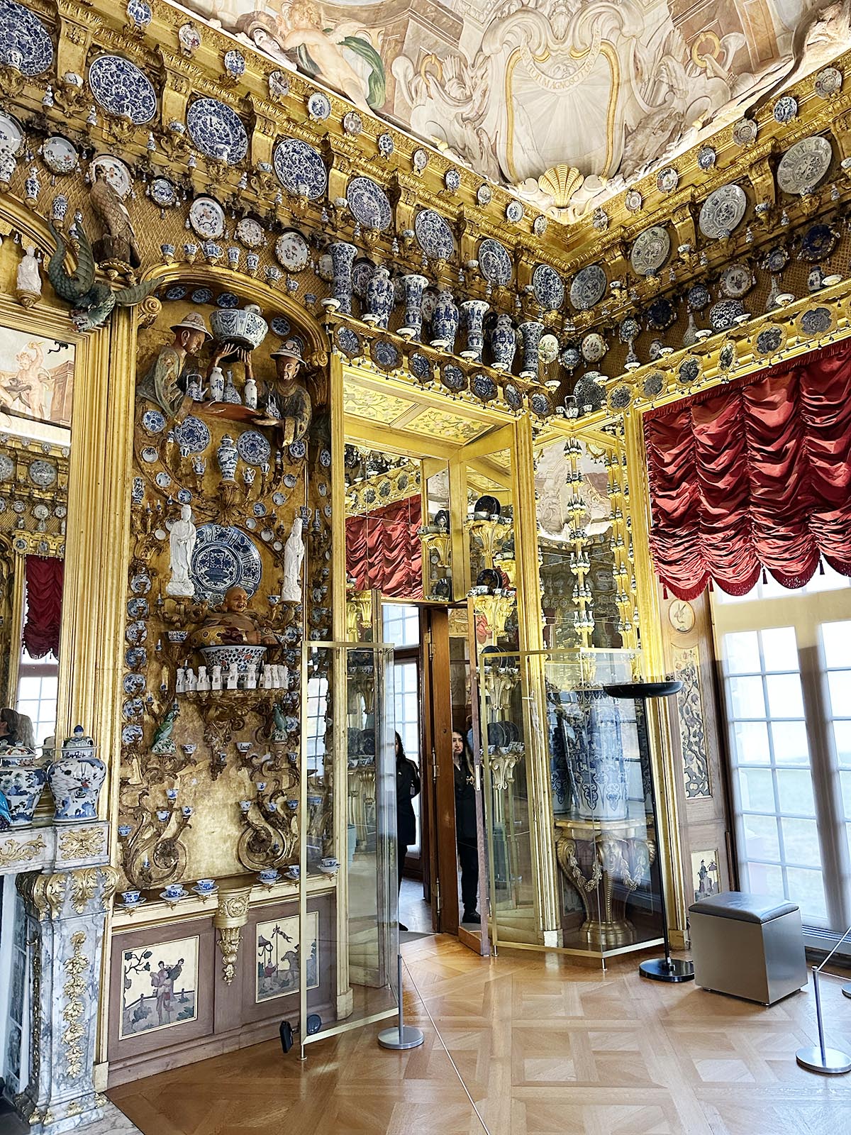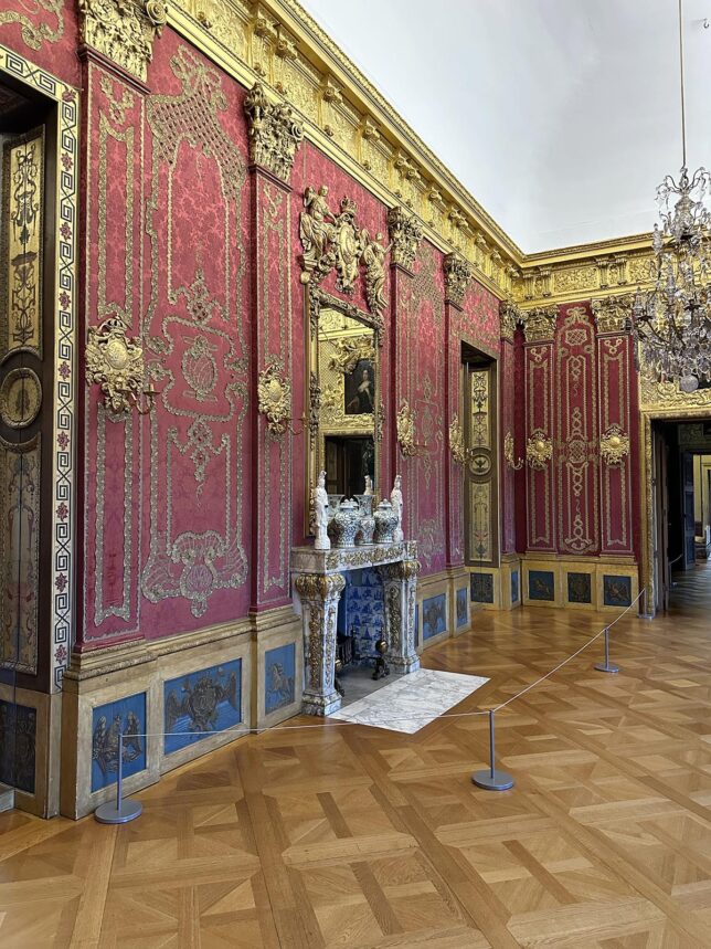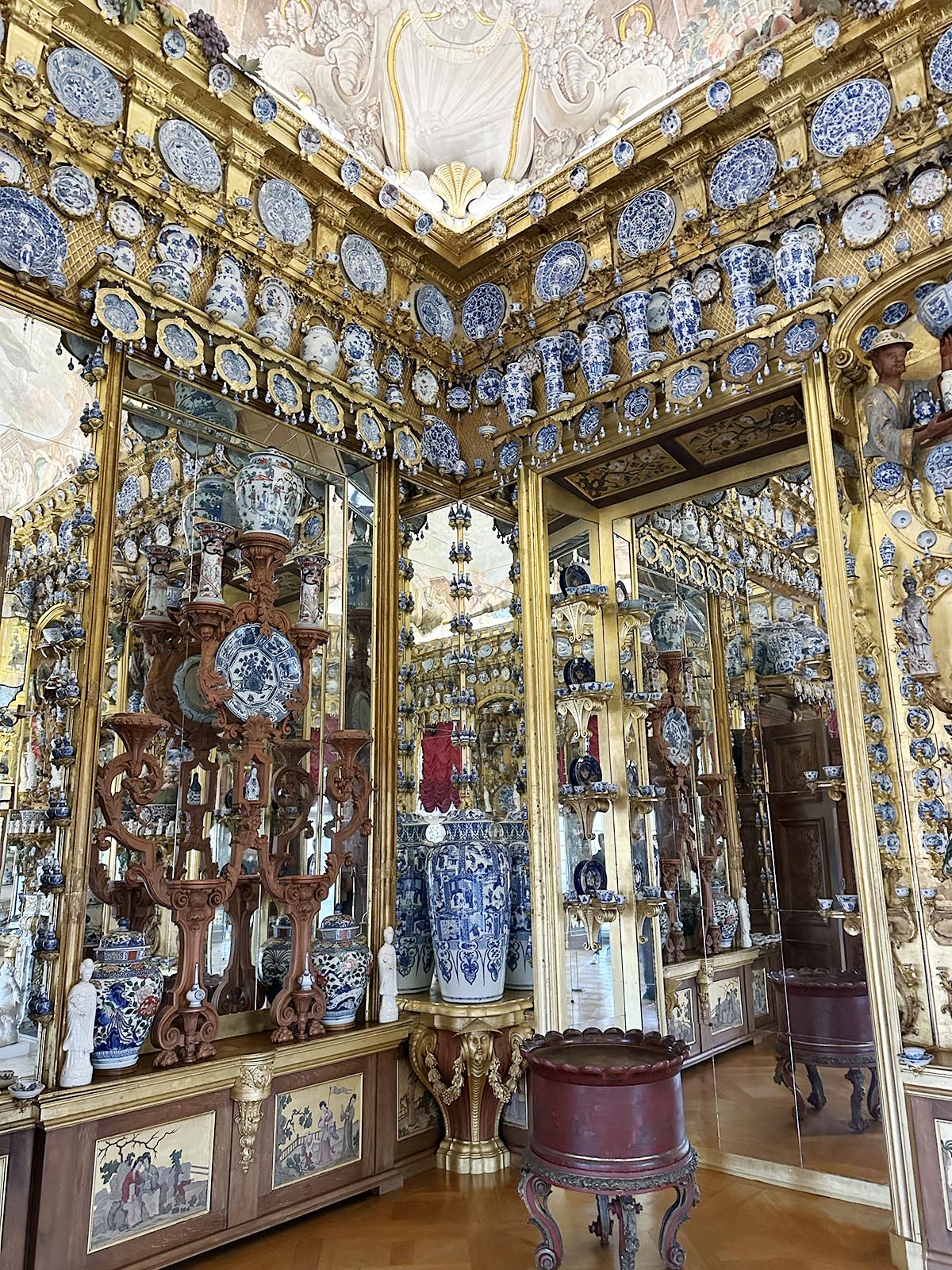 Väldigt vackert rum! En stor del av slottet och objekten däri blev förstörda under andra världskriget. Som så många andra byggnadsverk. Men tyskarna värdesatte sina byggnadsverk och historia så de lät bygga upp väldigt mycket igen.