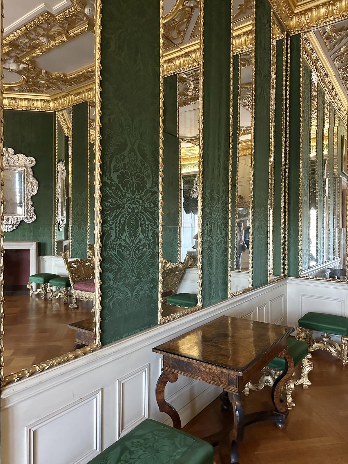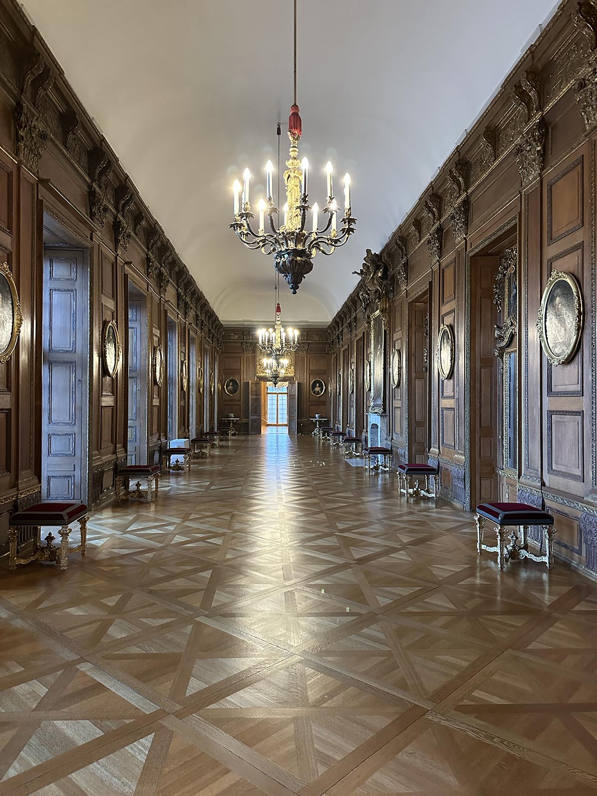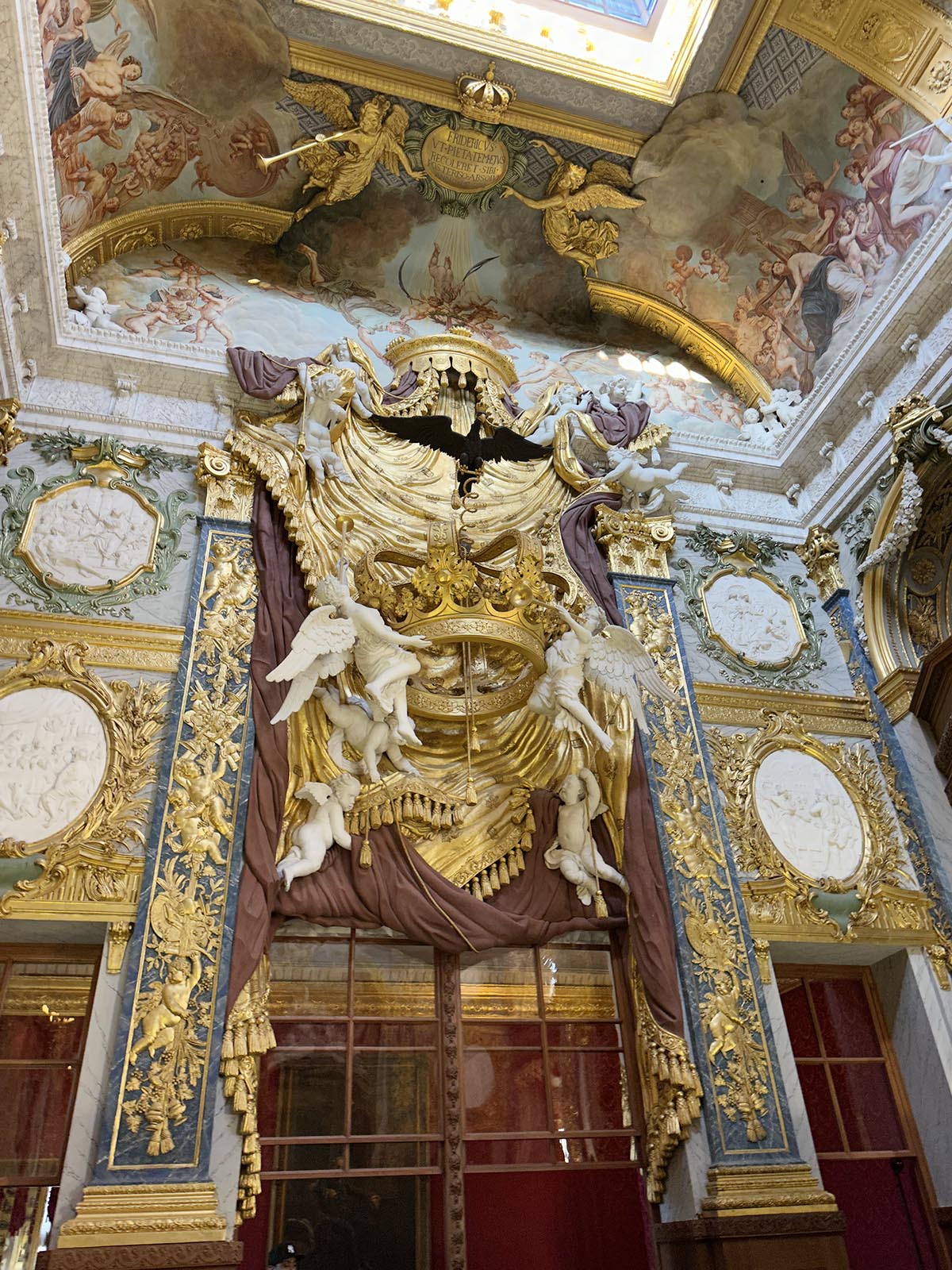 Väldigt vackert rum! En stor del av slottet och objekten däri blev förstörda under andra världskriget. Som så många andra byggnadsverk. Men tyskarna värdesatte sina byggnadsverk och historia så de lät bygga upp väldigt mycket igen.