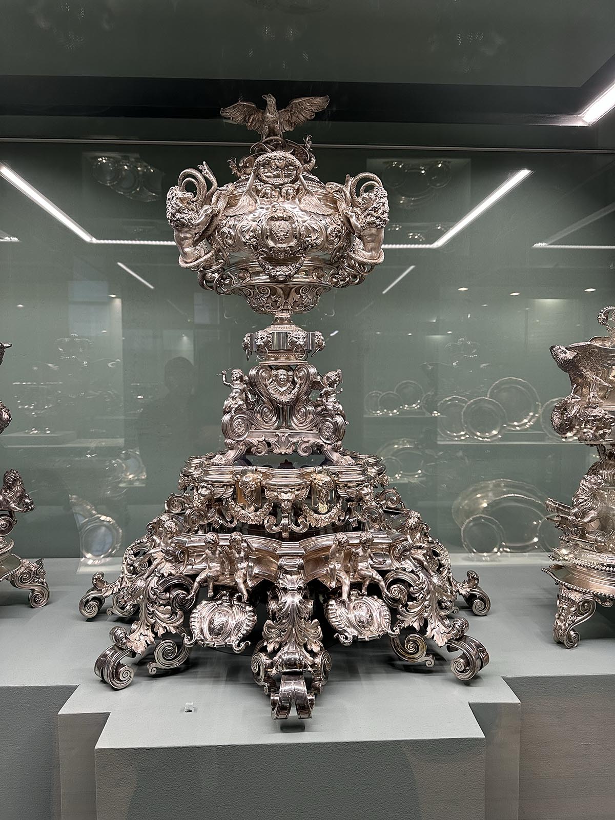 I början av 1900-talet förlovade sig kronprins Wilhelm med Cecilie av Mecklenburg-Schwerin. Det sattes direkt igång att designas en servis i 2600 delar för 50 personer. Kolla in de fina djuren i silver. Färdigställandet av servisen råkade sammanfalla med utbrottet av första världskriget. Servisen kom aldrig att användas vid giftermålet och skänktes sen till Berlin stad.