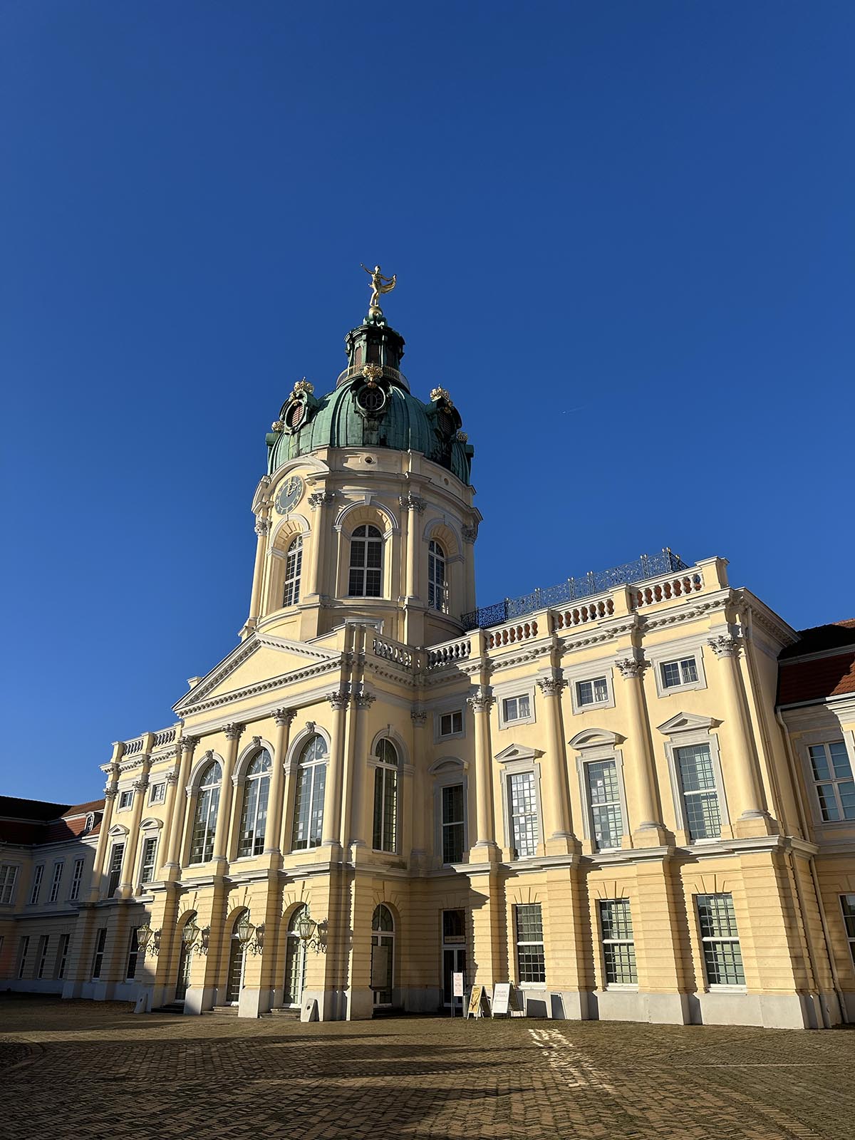 Det var väldigt trevligt att besöka Charlottenburg slott i Berlin och lätt att komma dit. Vi tog pendeltåget (S3, S5, S7 eller S9) från hotellet vid Hackescher markt (i centrala Berlin) och bytte sen till buss M45. Sen var det en kort promenad på ett par minuter. Sammanlagt 35 minuter. Nu när vi var där i november 2025 så kostade det 10 EUR i inträde per person för besöket. Sen fanns det en kombibiljett för 19 då man kunde se ”allt”, men vi nöjde oss med den mindre biljetten.