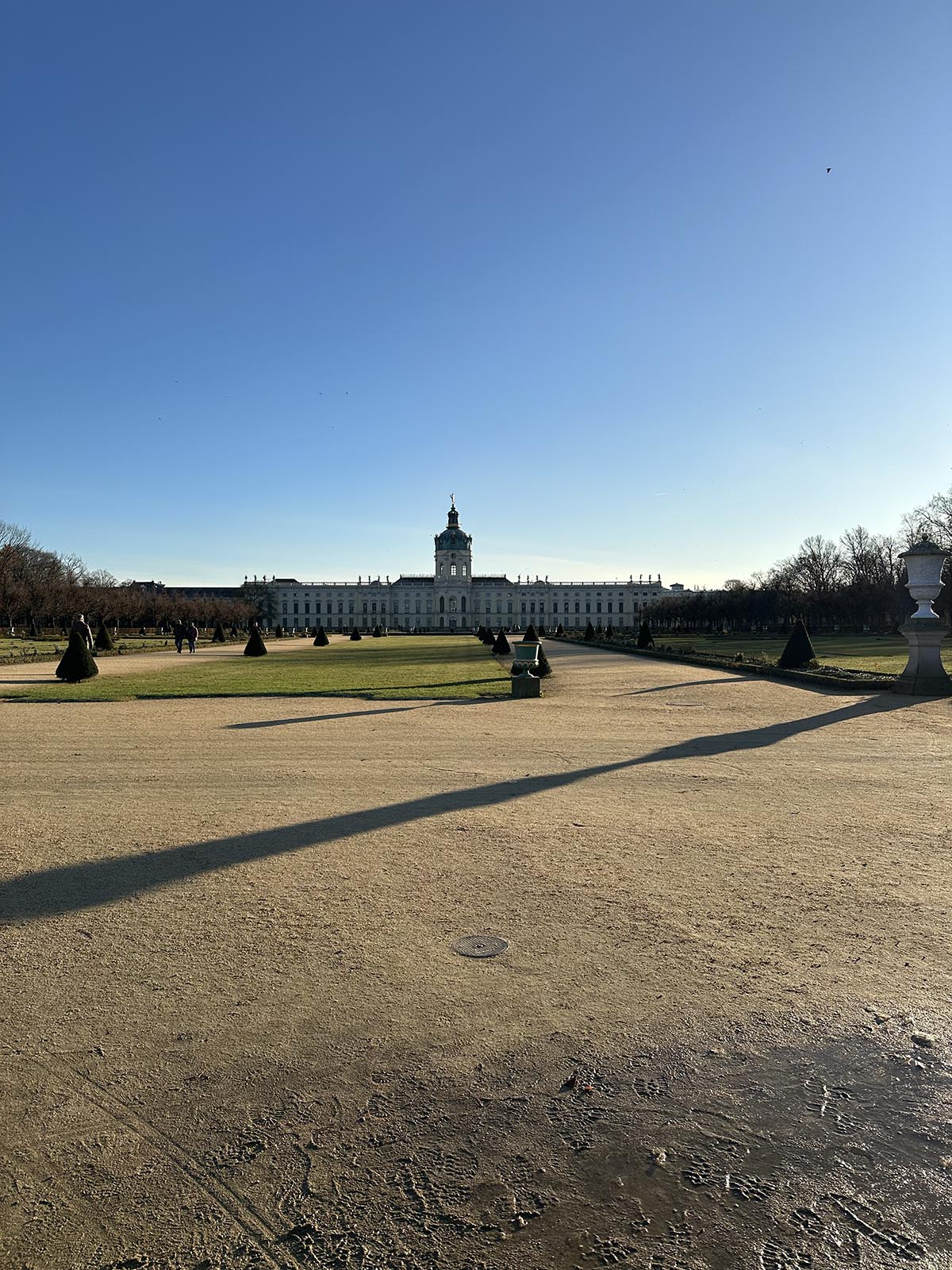 1701 utropade Fredrik III sig själv (om jag förstod rätt) till kung av Preussen. Då fick han en ny siffra och skulle plötsligt heta Fredrik I. Inte förstår jag hur det där funkar. Men men. När han blev kung så blev såklart hans fru drottning Sophie Charlotte. Hon beordrade då att sommarstugan skulle byggas ut och bli en representabel anläggning. Jag vet inte hur stort det är, men jag läste nånstans att det är 140 meter med rum längs slottsparken. Det kan jag tänka mig. På bilden ser man inte hela bredden.