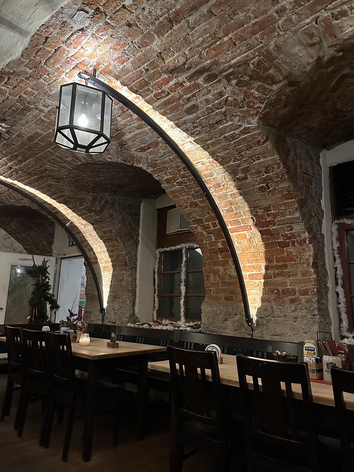Äta middag i källarvalvet på äldsta huset i centrala Berlin (stadsdelen Mitte).