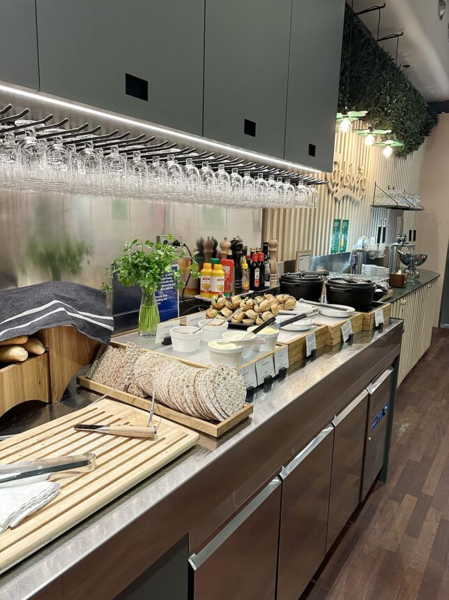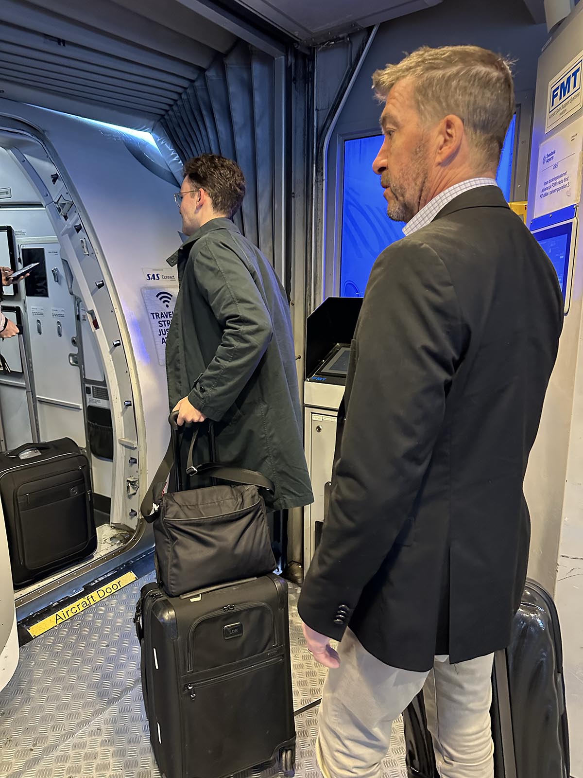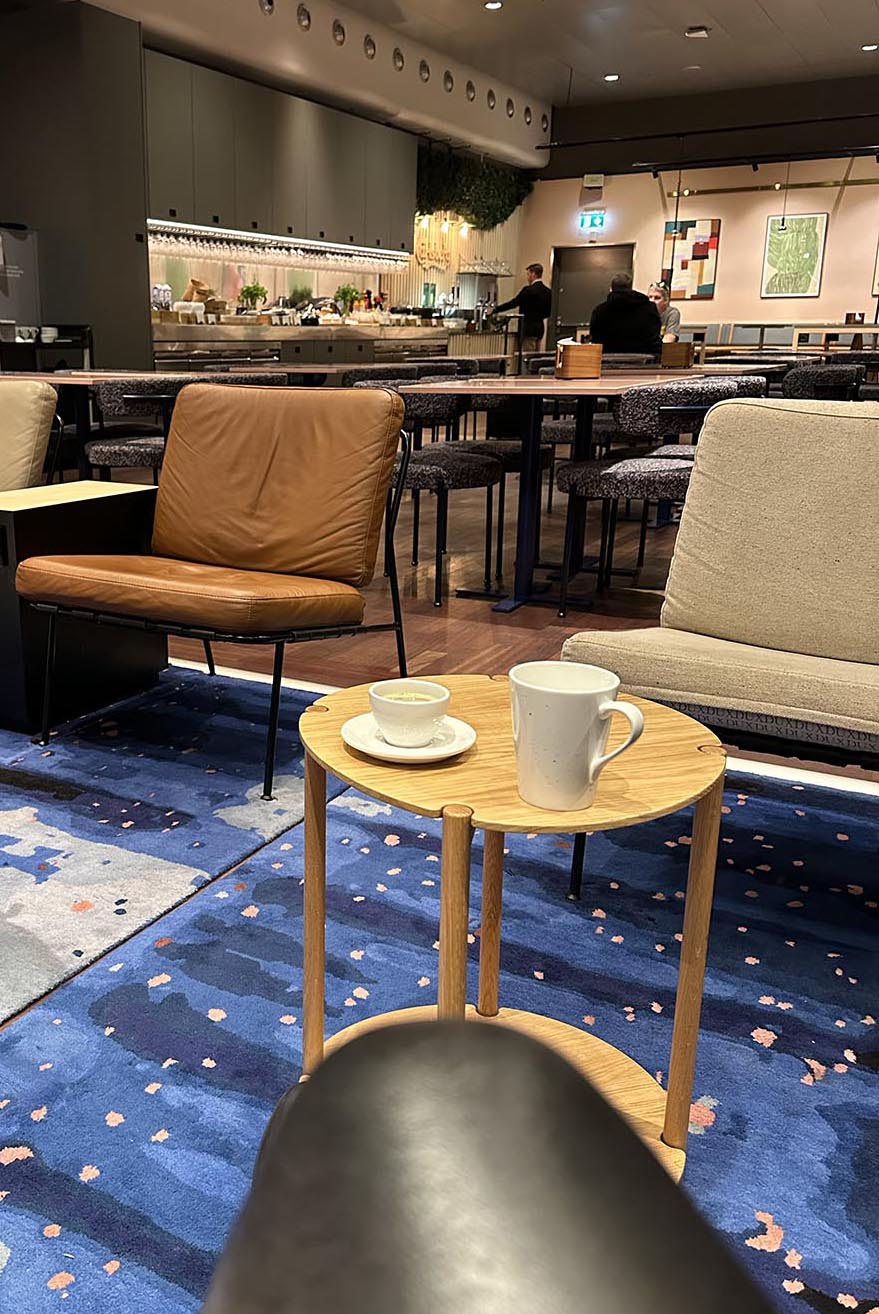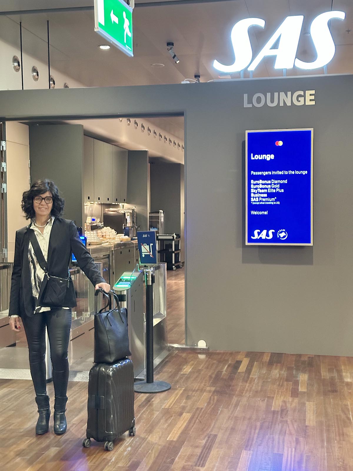 Vi blev avsläppta prick 06.00 på Arlanda. Vi löste ut boardingkort, checkade in resväskorna och gick till SAS-loungen. Vi kör lite guldkant denna helg som sagt. Taxi till och från Arlanda (har aldrig hänt förut privat, tror jag) och businessbiljetter på flyget.
