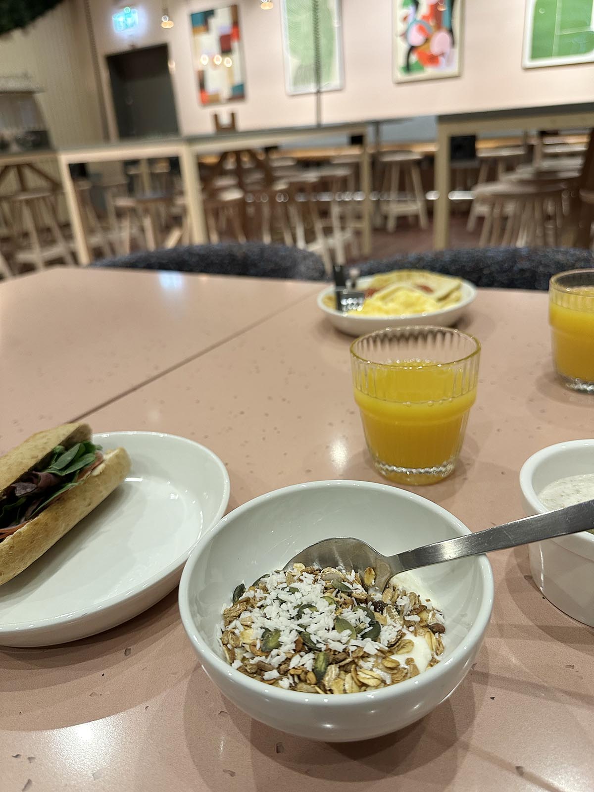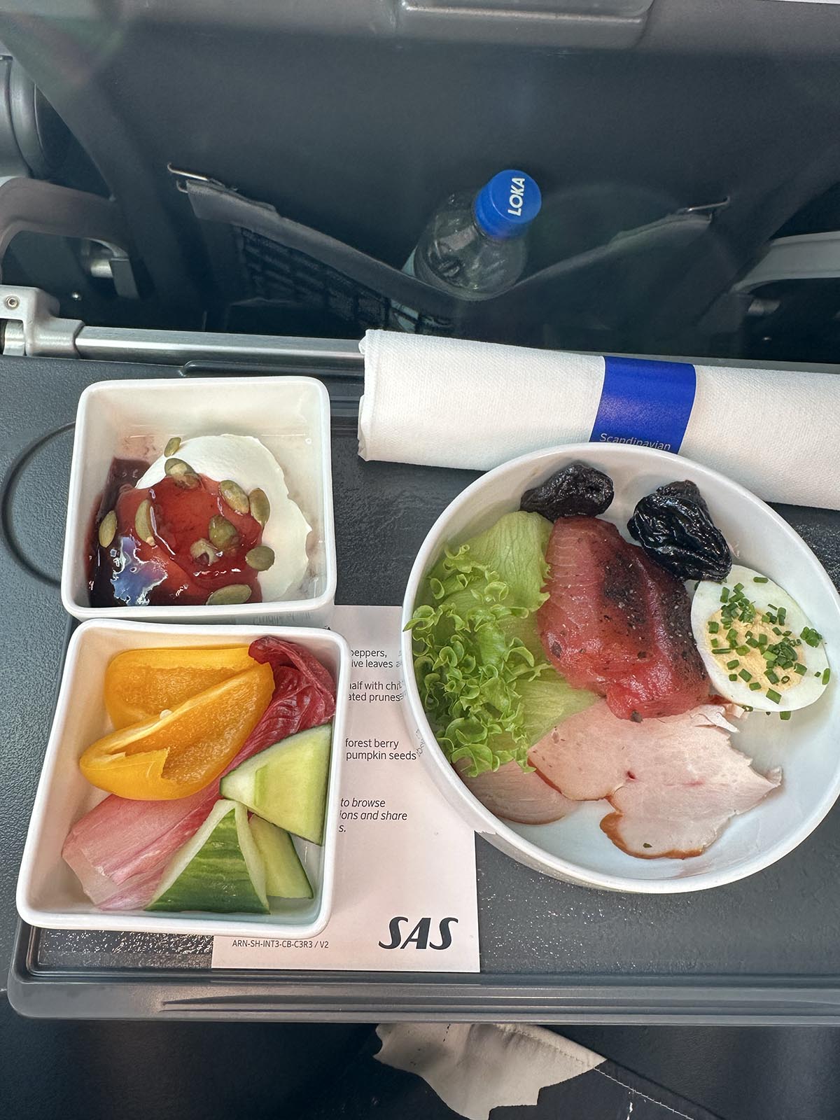 Vi hann bli servade en trevlig frukost nummer två på planet innan det var dags att landa efter 1,5 timme.