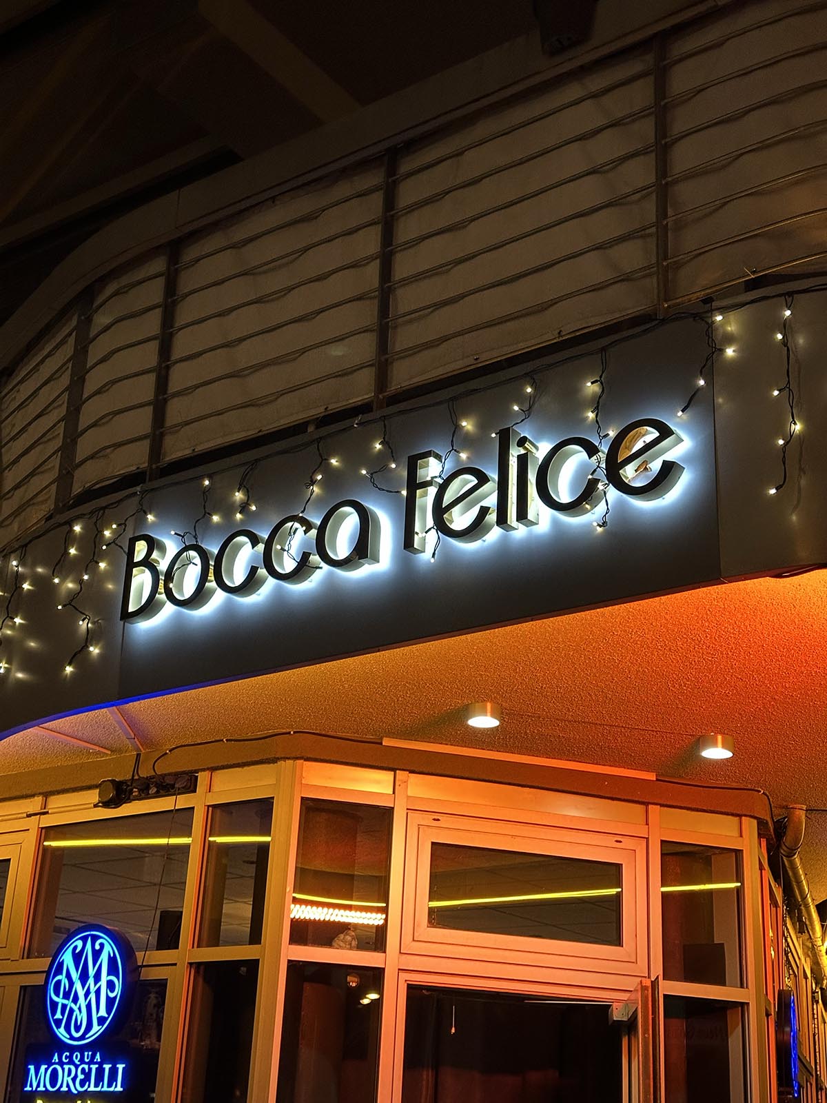 När vi är ute och reser brukar vi alltid välja lokal mat. Så även i Tyskland såklart. Men, den tyska maten är inte ”jättefestlig” om man säger så. Så vi sökte runt på trevliga restauranger långt innan resan för att hitta något bra. Visst, det kom upp även ett par tyska restauranger. En fransk och en italiensk. Valet var lätt. Dels gillar vi italienskt och dels såg den mycket mysigare ut än alla de andra. Valet föll på Bocca Felice. Den hittar du här.