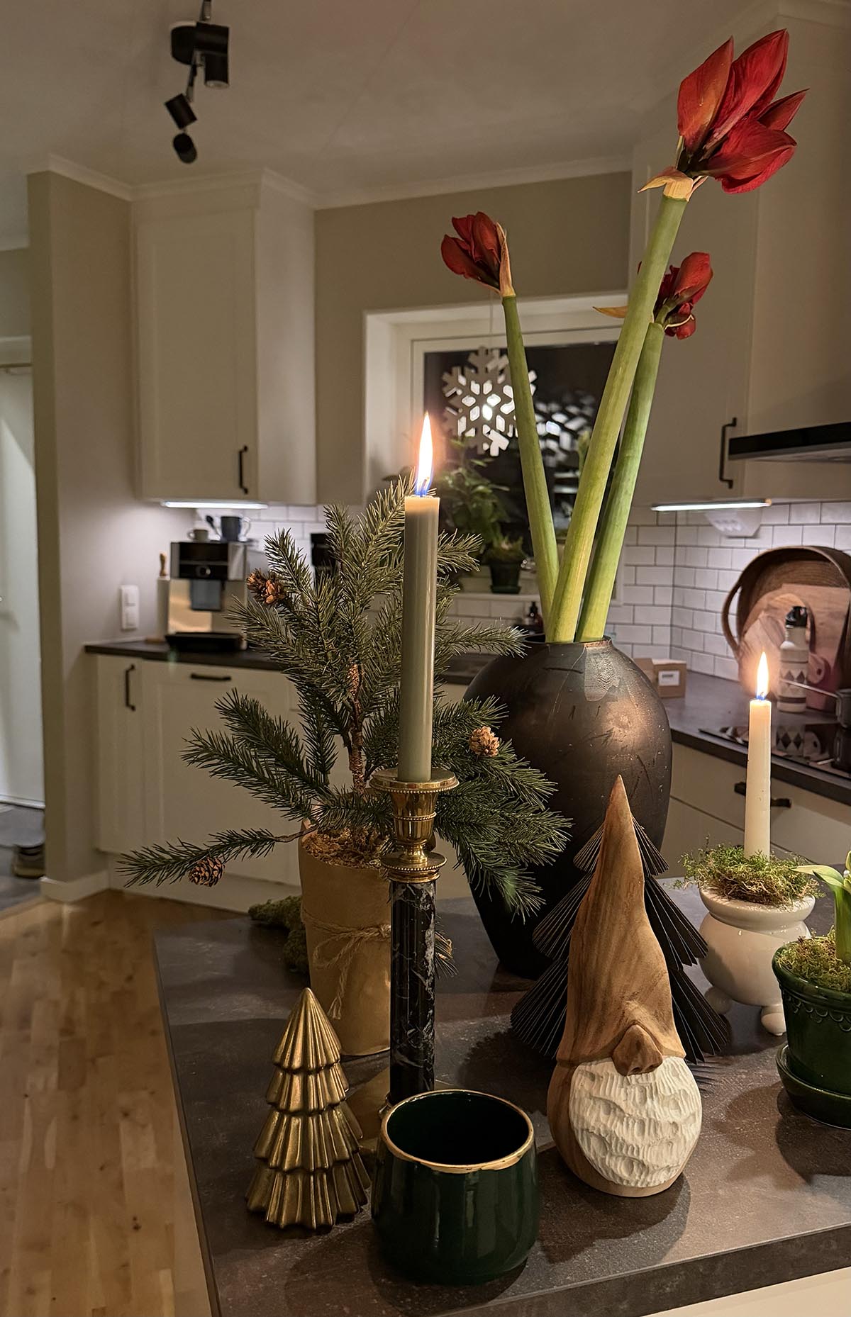 Bilderna tog jag under förra helgen så de där amaryllisarna är just nu helt utslagna. De är så coola och ståtliga. När det närmar sig jul så plockas det om lite bland pyntet och nytt gammalt blir som nytt igen. En evig karusell.