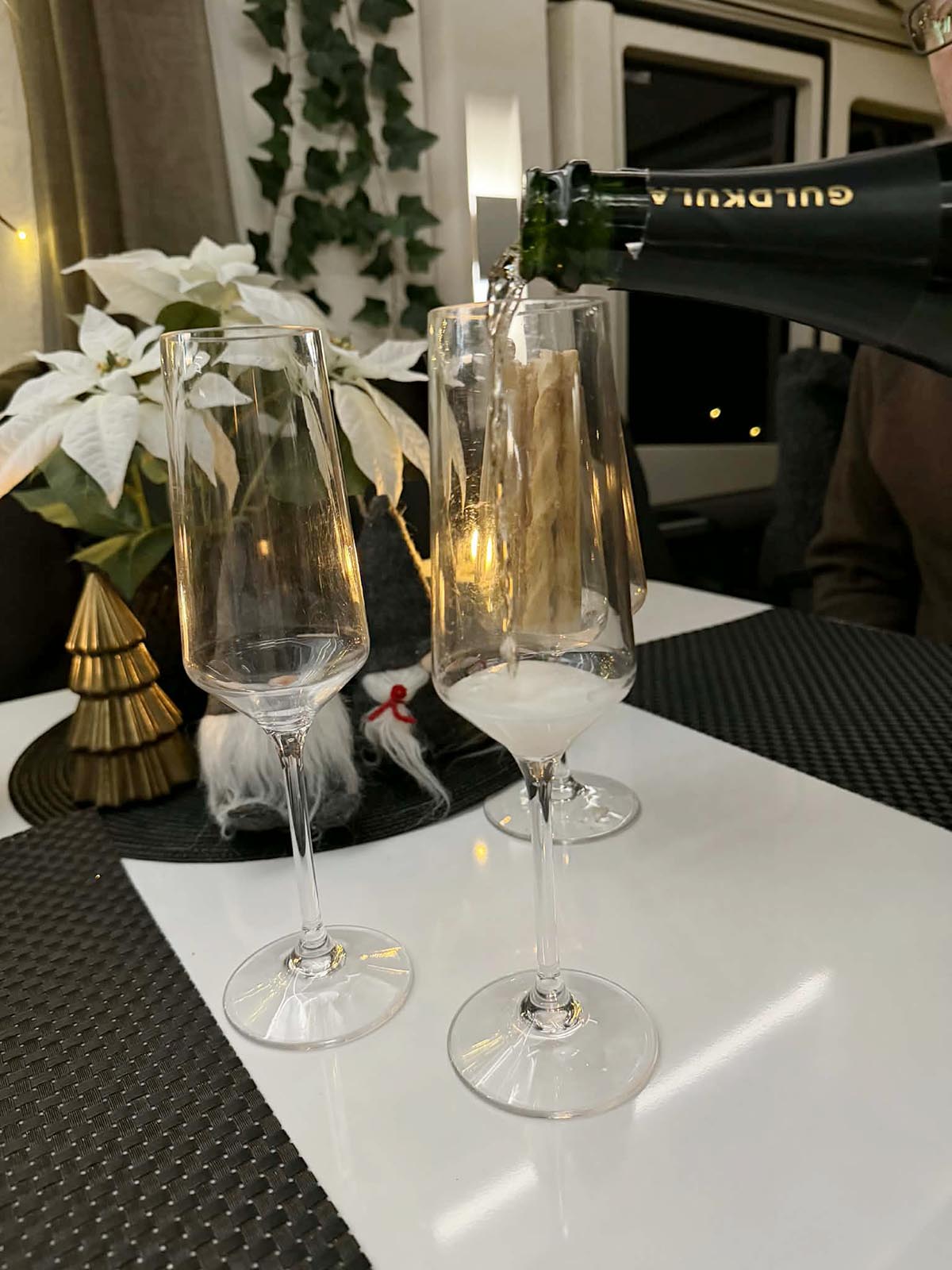 Vi är ute på första turen på två månader. Så mysigt att fixa lite julstämning i husbilen. Denna gång åkte vi bara en halvtimme innan vi satte ner tassarna och korkade upp bubblet.
