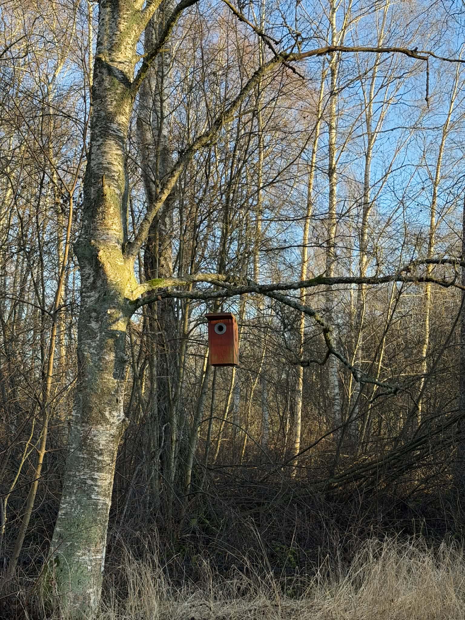 Solen nådde fågelholken, men jag vet inte om det var så många hemma där.