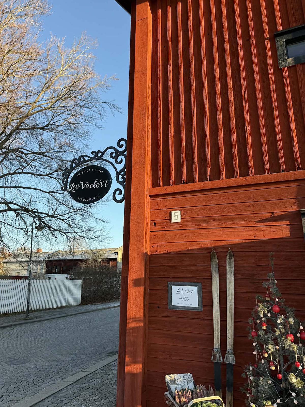 Vi gick över en liten bro i riktning mot centrum. Där dök det upp en inredningsbutik i stadens äldsta hus. Lev Vackert hette den.