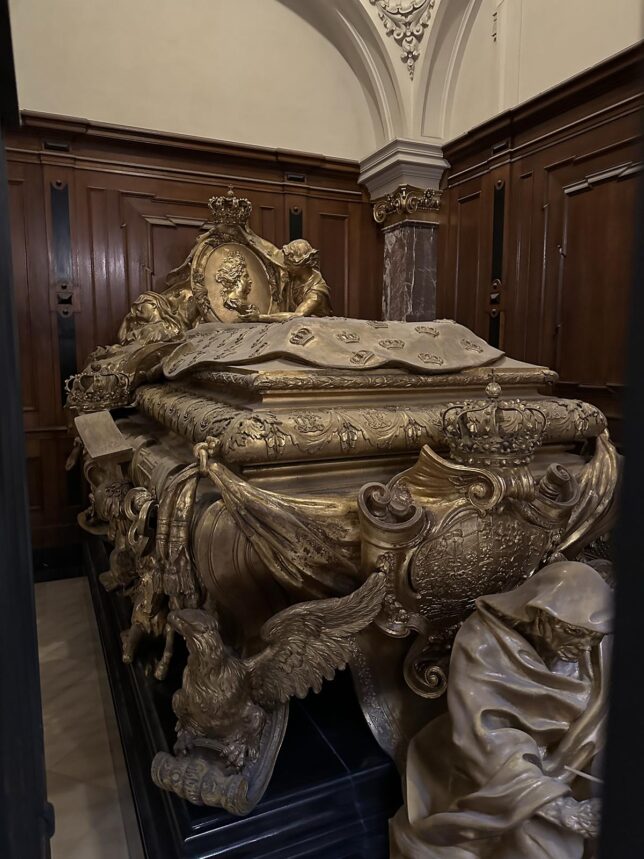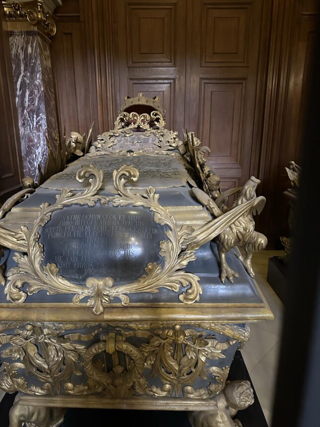 Här ligger Kurfurste Fredrik Vilhelm, död 1688, och hans sonhustru drottning Sophie Charlotte, död 1705. Det känns rätt makabert att gå där och titta, kan jag tycka. Inte för att man ser just själva döingarna, men ändå.
