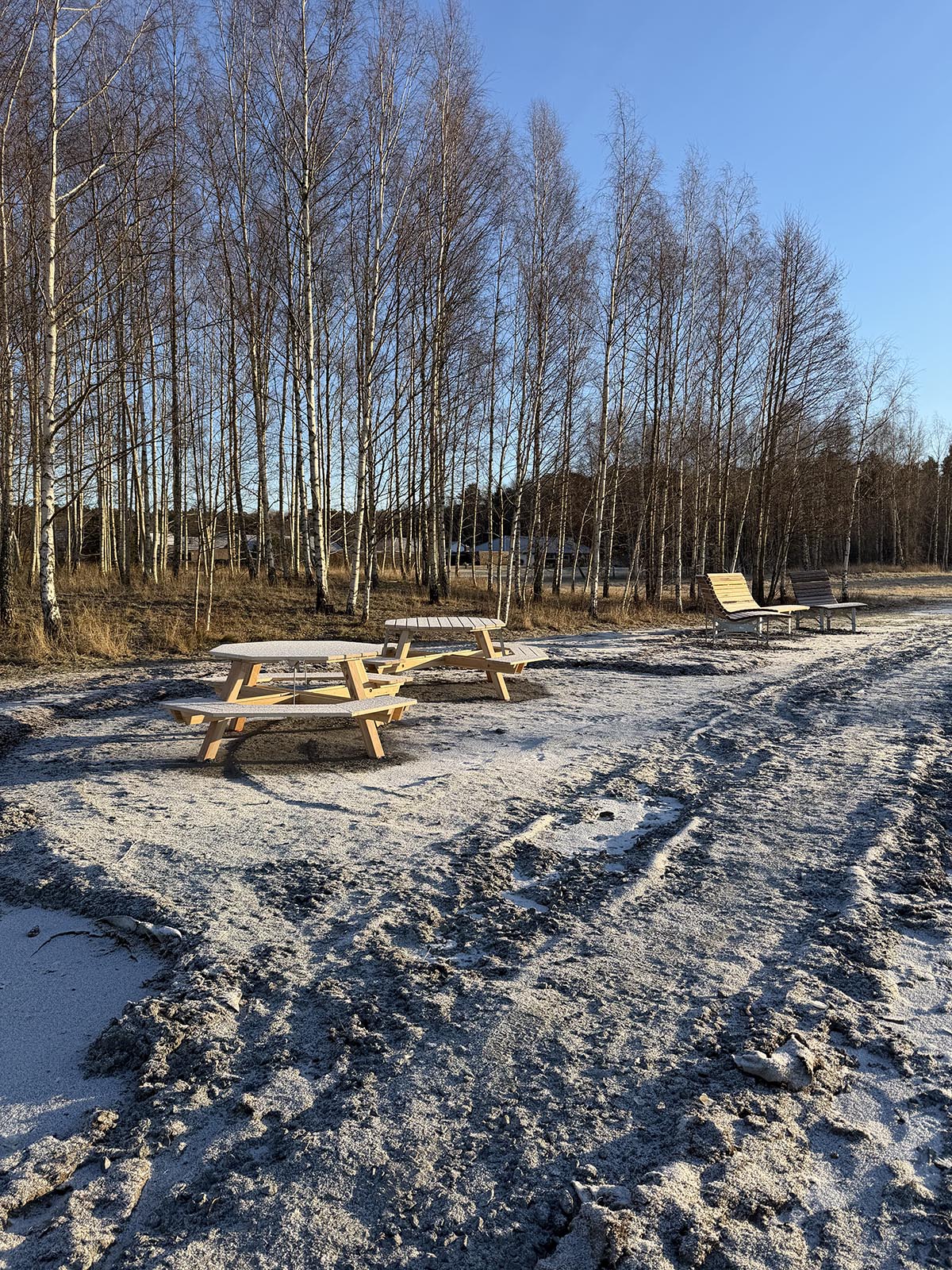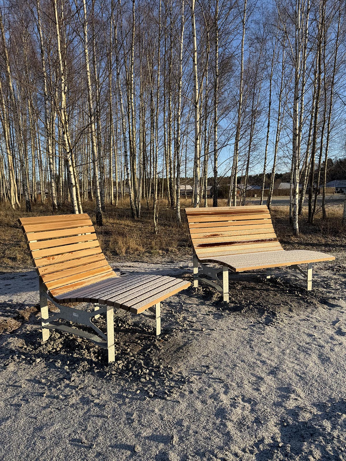 Och kolla här då! Intill borden har de också satt två liggbänkar. En smal och en lite bredare. Hur härligt att ligga där framåt våren och sommaren?!