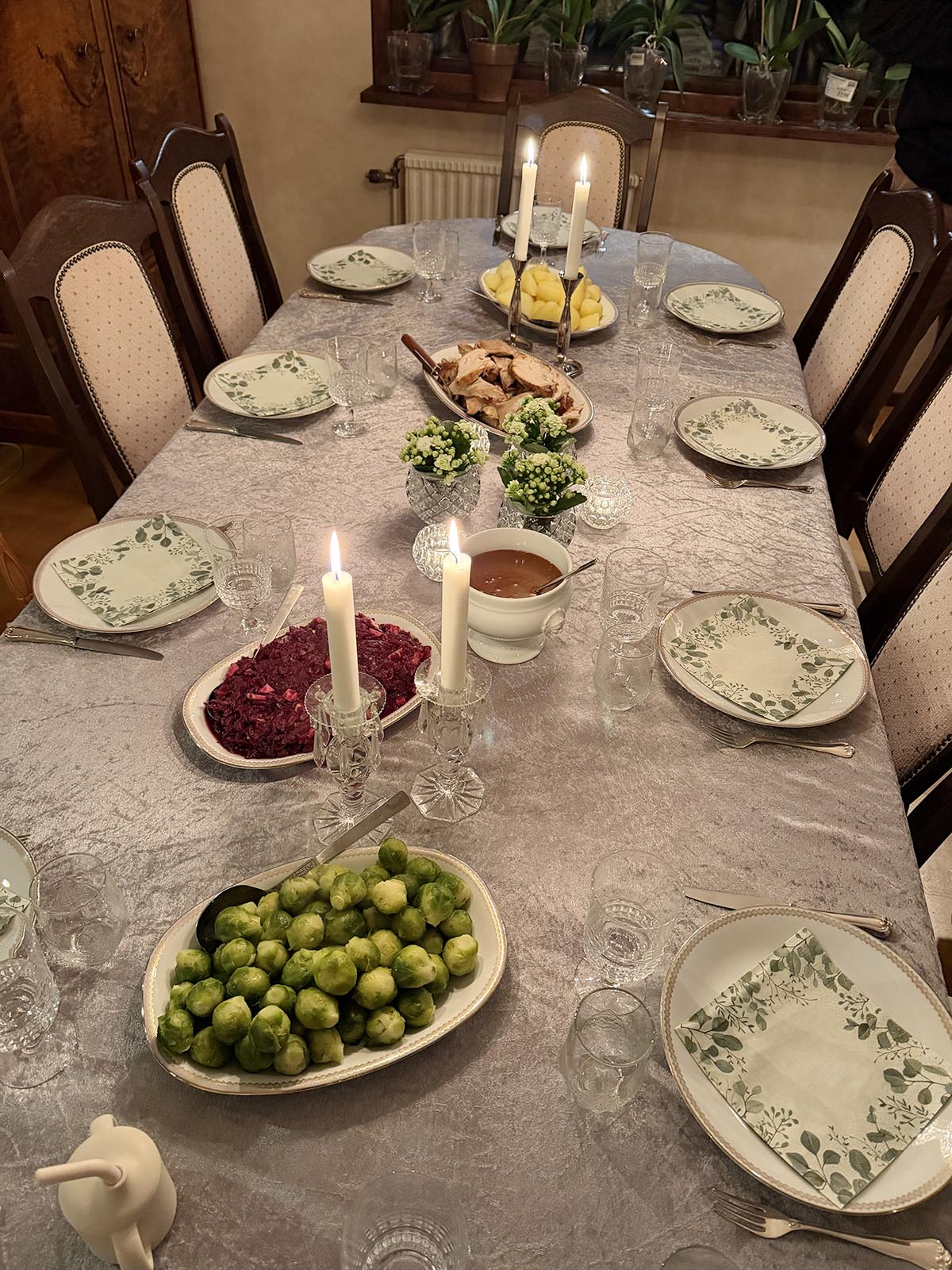 Efter en stund kom en kalkonmiddag på bordet och pannacotta-dessert. Väldigt gott och trevligt allting.