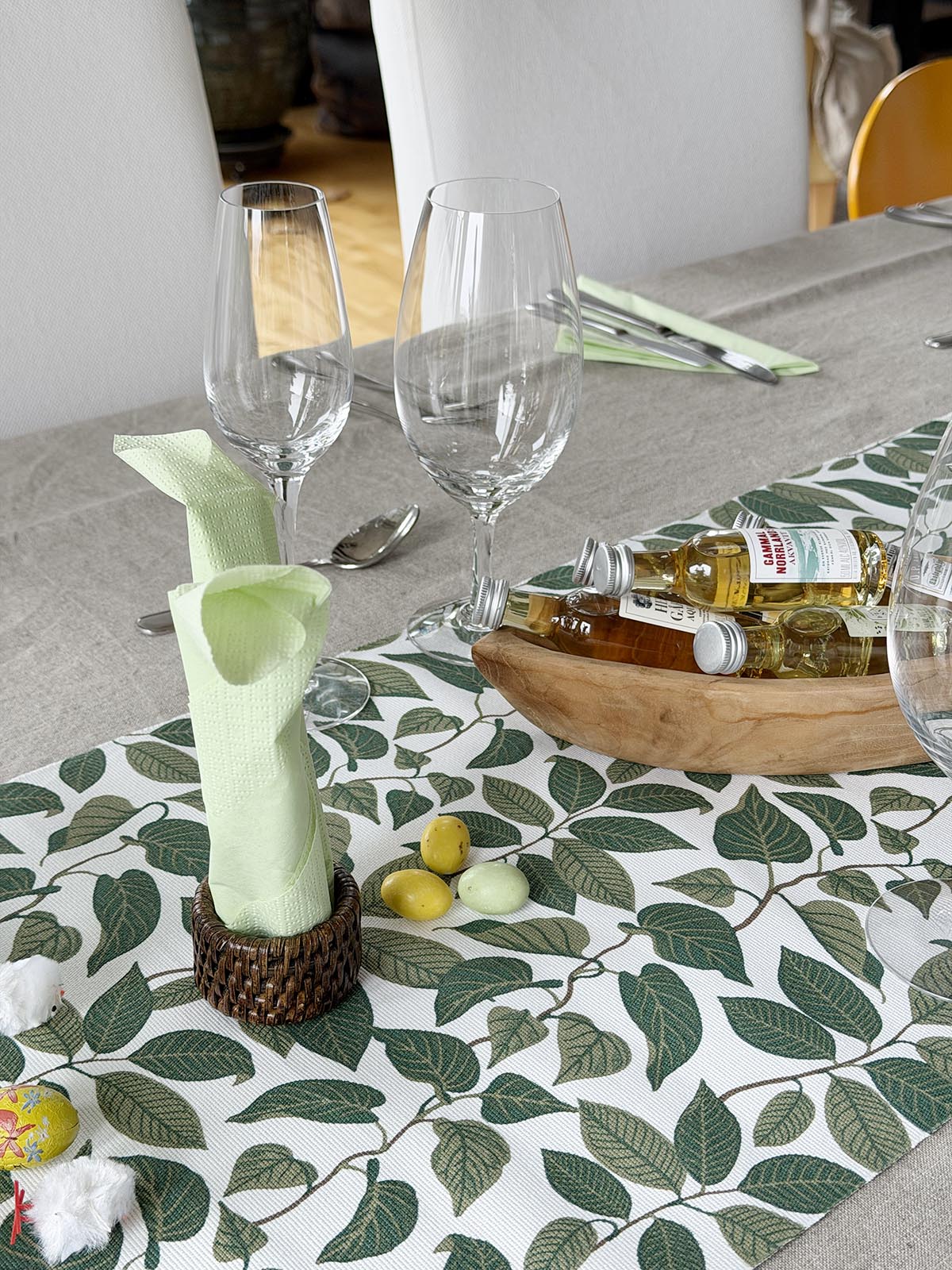 Och några kaninöron här och där, i form av gröna servetter och servettringar från Newport. Och öl och snapsglas från Orrefors Difference. Just de finns tyvärr inte kvar längre utan bara vinglas och bubbelglas.