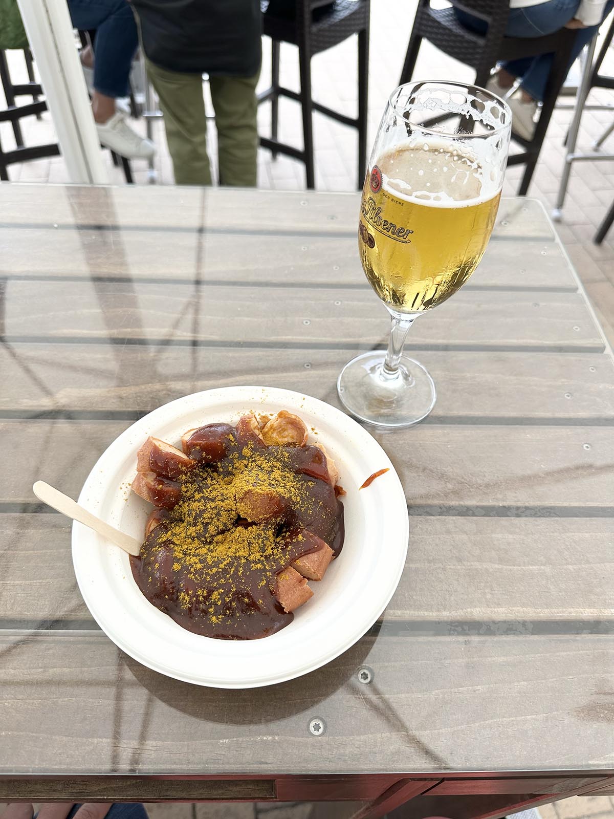 Strosade runt en stund, men konstaterade att det inte var mycket att se annat än fina strandvillor. Det är nog mest ett ställe att ta det lugnt på. Vi pausade med en öl och currywurst. De där korvarna simmar verkligen i jättesöt ketchup kryddad med curry. Super-tyskt.