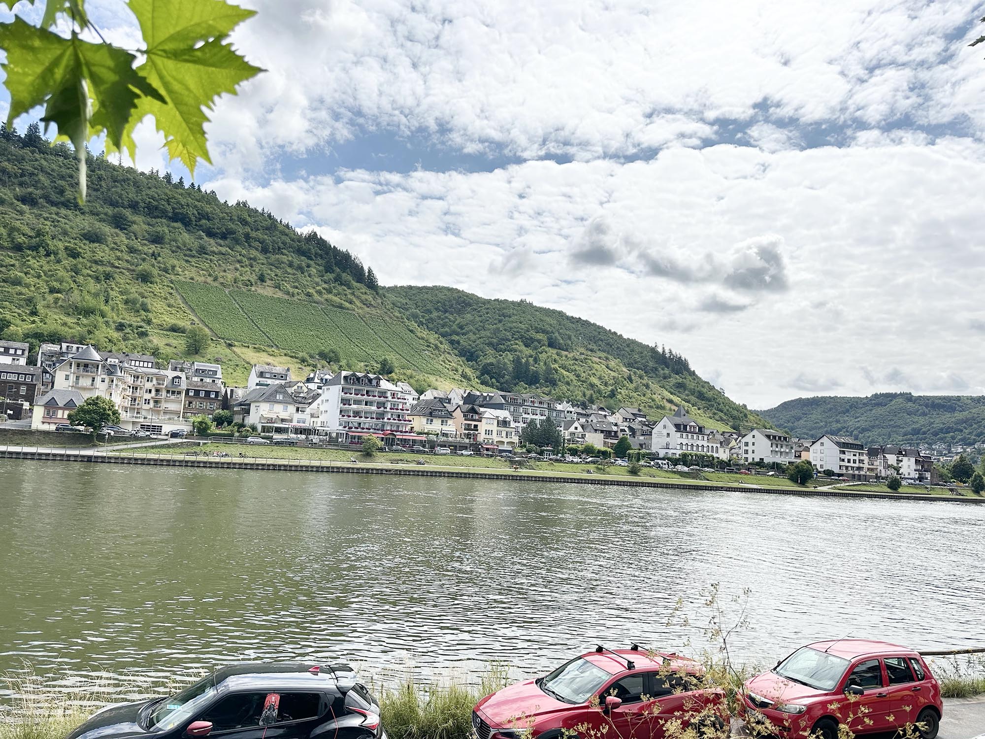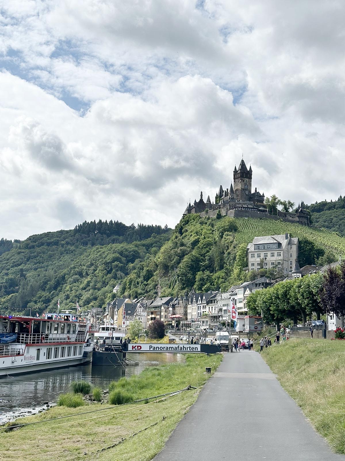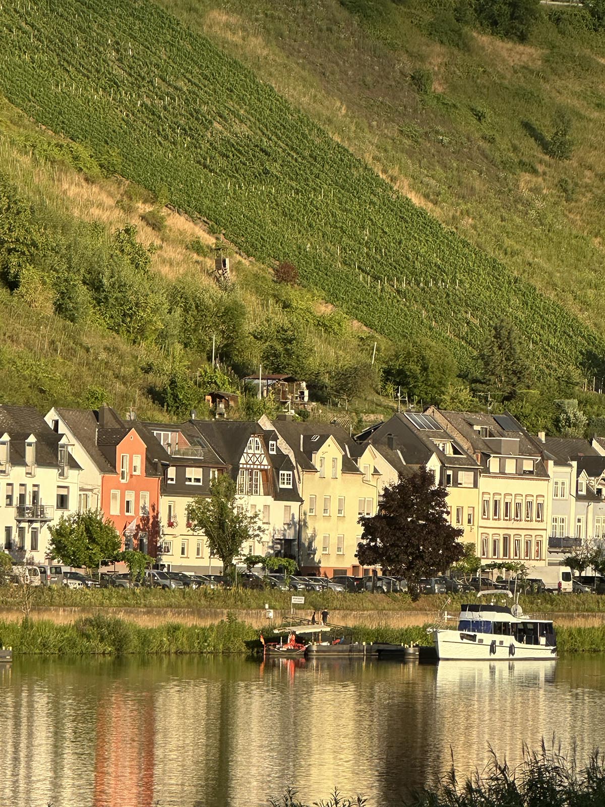 Samhället ligger väldigt fint längs Mosel med hus på båda sidor och vinodlingar på båda sidor.