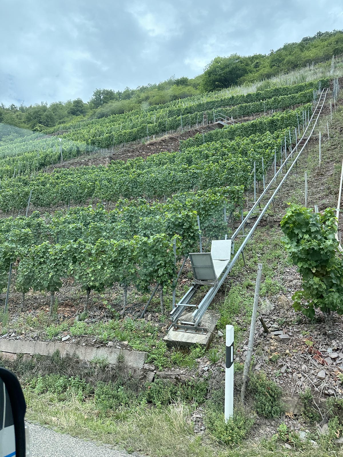 Där framme på bergssluttningen växer Europas brantaste vinodling, Bremmer Calmont. Lite halvbesvärligt att skörda med en lutning på uppemot 60 grader, kan jag tänka mig.