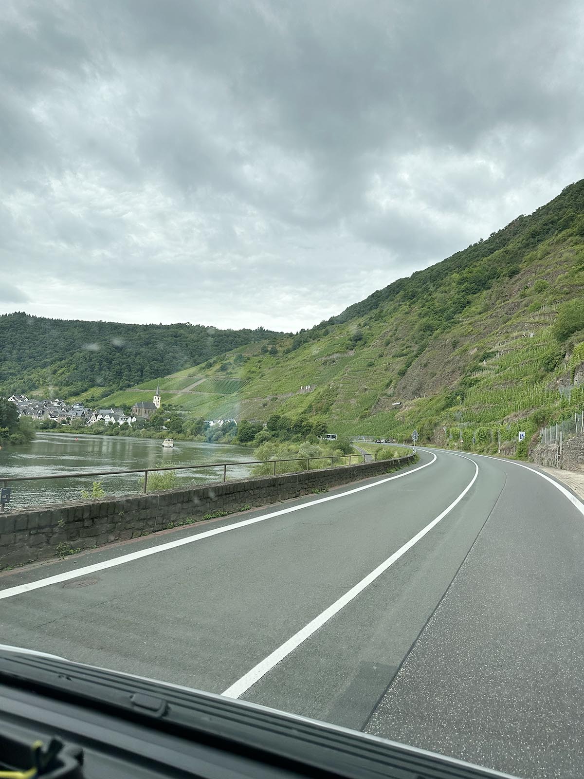 När korven landat i magen i Ellenz Poltersdorf så körde vi tre mil ytterligare söderut. Så vackert i Moseldalen.