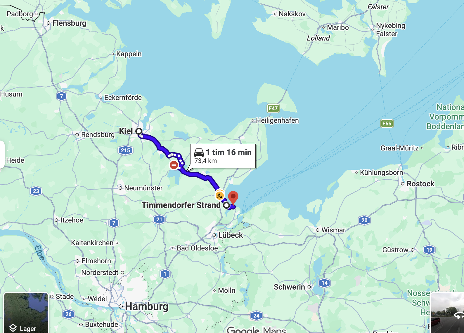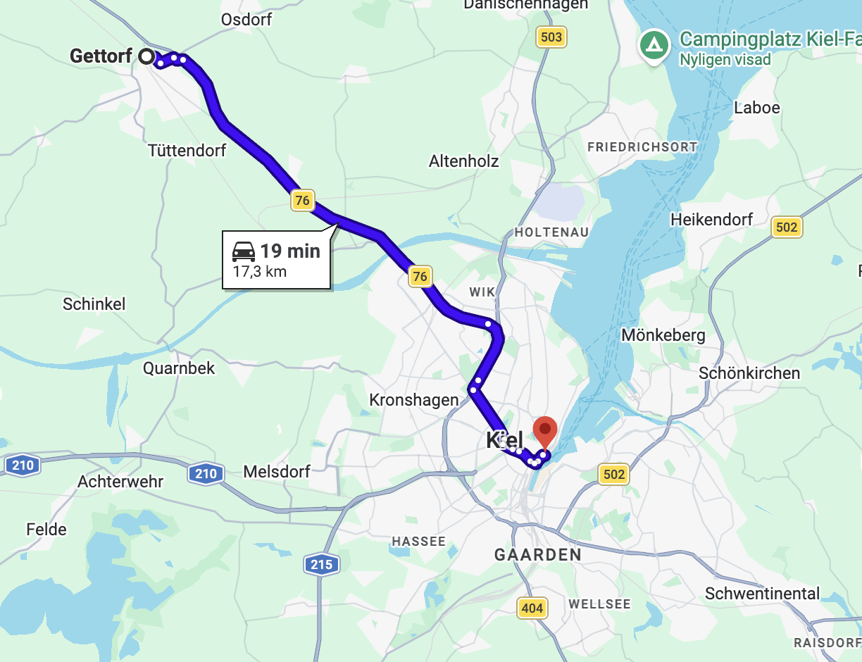 Ställplats nära Kielfärjan – samhället Gettorf