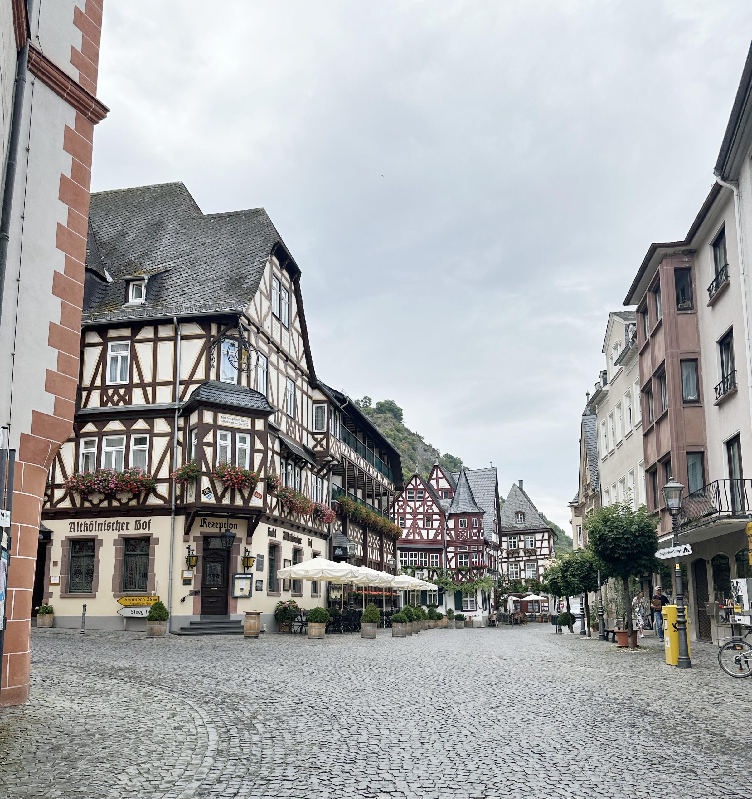 Bacharach, intill Rehns strand, var verkligen en liten söt och trevlig stad som jag gärna återvänder till. Vi bodde på Camping Sonnenstrand med gångavstånd till centrum. Trevlig, men ganska trång camping. Skulle tro att det inte är ett ställe för längre bilar än 7,5 m. Här hittar du deras webplats. Vi hade tänkt stanna bara en natt i Bacharach, men förlängde till två eftersom vi trivdes och det blev fint väder.