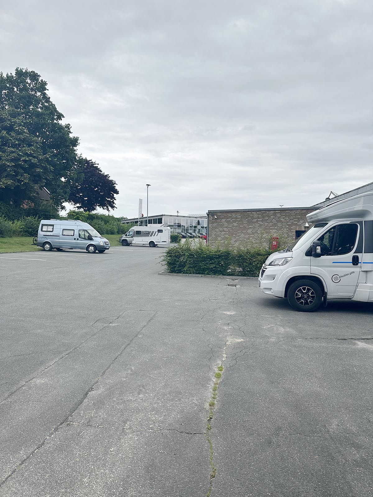 Måste ju tipsa om den här ställplatsen. Bra ställe att stå på om man inte vill eller kan stå centralt i Kiel. Den ser ju verkligen aptråkig ut, men var faktiskt helt ok. Det är som en vanlig parkering, men med tillgång till servicehus, och ligger i ett lugnt villaområde i staden.