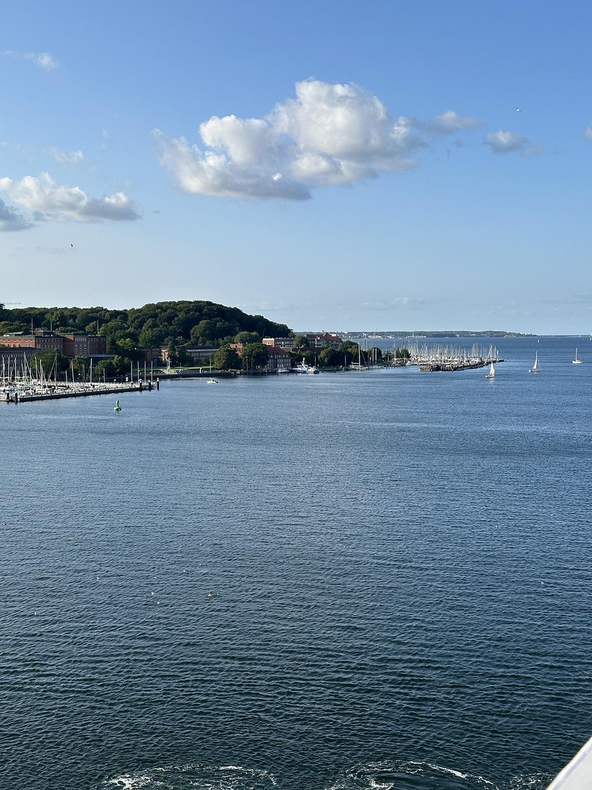 Upprinnelsen till vår resa var att Andreas mamma och pappa skulle fira guldbröllopsdag på platsen för själva bröllopsfesten och undrade om resten av familjen ville delta. Ja, de är födda i Tyskland. Alla ville och kunde delta! När vi ändå skulle dit så tog vi husbilen och passade på att ta en roadtrip på tre veckor. Vi var ivriga att komma iväg så vi åkte hemifrån på kvällen innan färjan skulle gå från Göteborg. Övernattade halvvägs och var på plats i god tid. Vi hann köpa miljödekal för att klistra på bilen och hann också väga den innan vi körde till färjan. Fick en superhärlig start på däck med god dryck och skön musik. Efter middag och en lugn natt ankom vi Kiel vid 9.30.