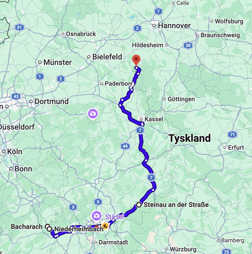 Vi hade som sagt startat på morgonen i Bacharach och gjort ett par stopp längs vägen. Effektiv restid var nog 5-6 timmar.