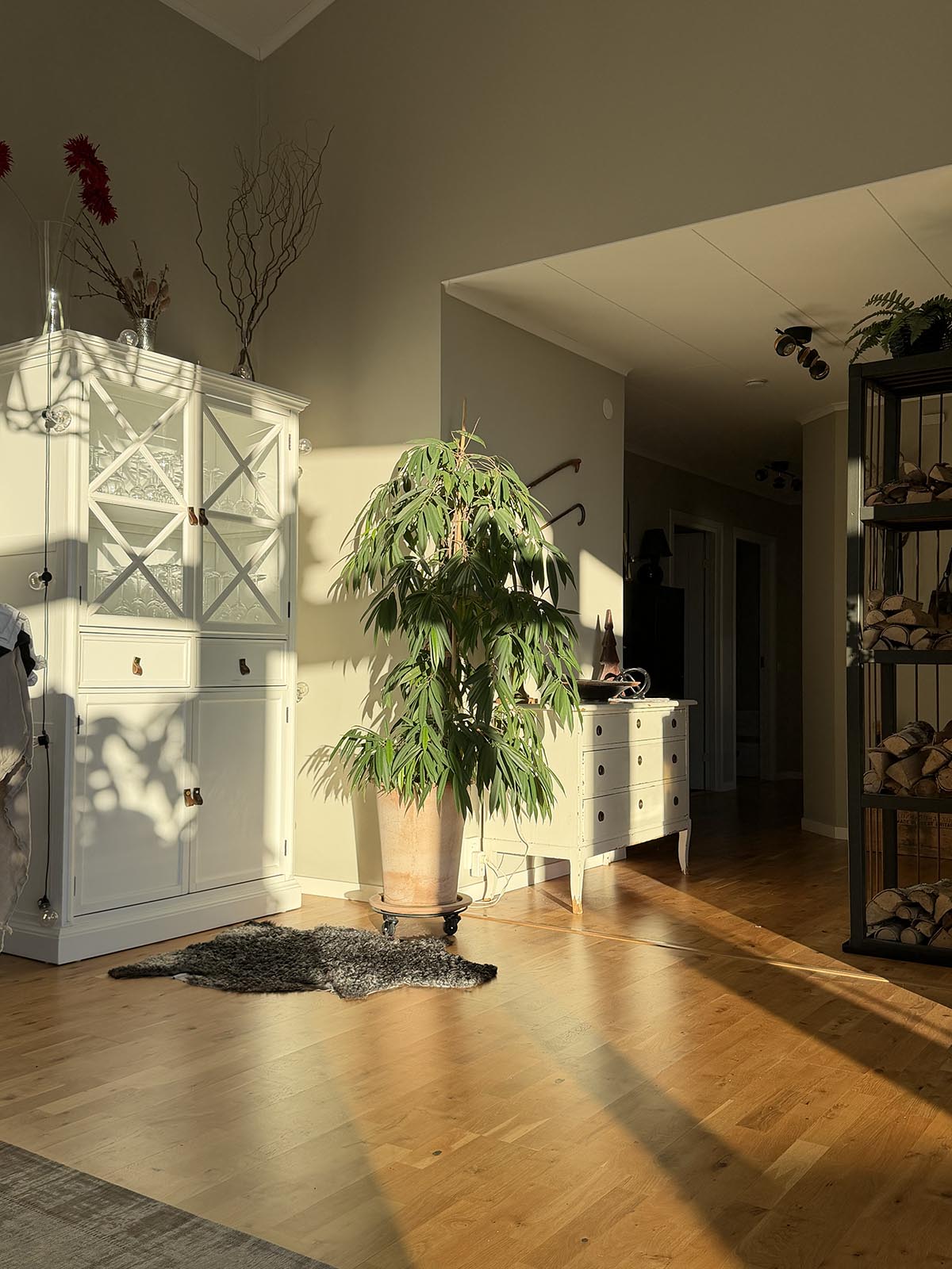 Vi har vårt vardagsrum i eftermiddagssol. Mestadels iallafall. Solen gör sig påmind redan mitt på dagen också, men det blir mest påtagligt på eftermiddagen. Eftersom vi har så stora fönster så märks det extra tydligt nu under våren då det är sån skillnad i ljuset. Underbart!