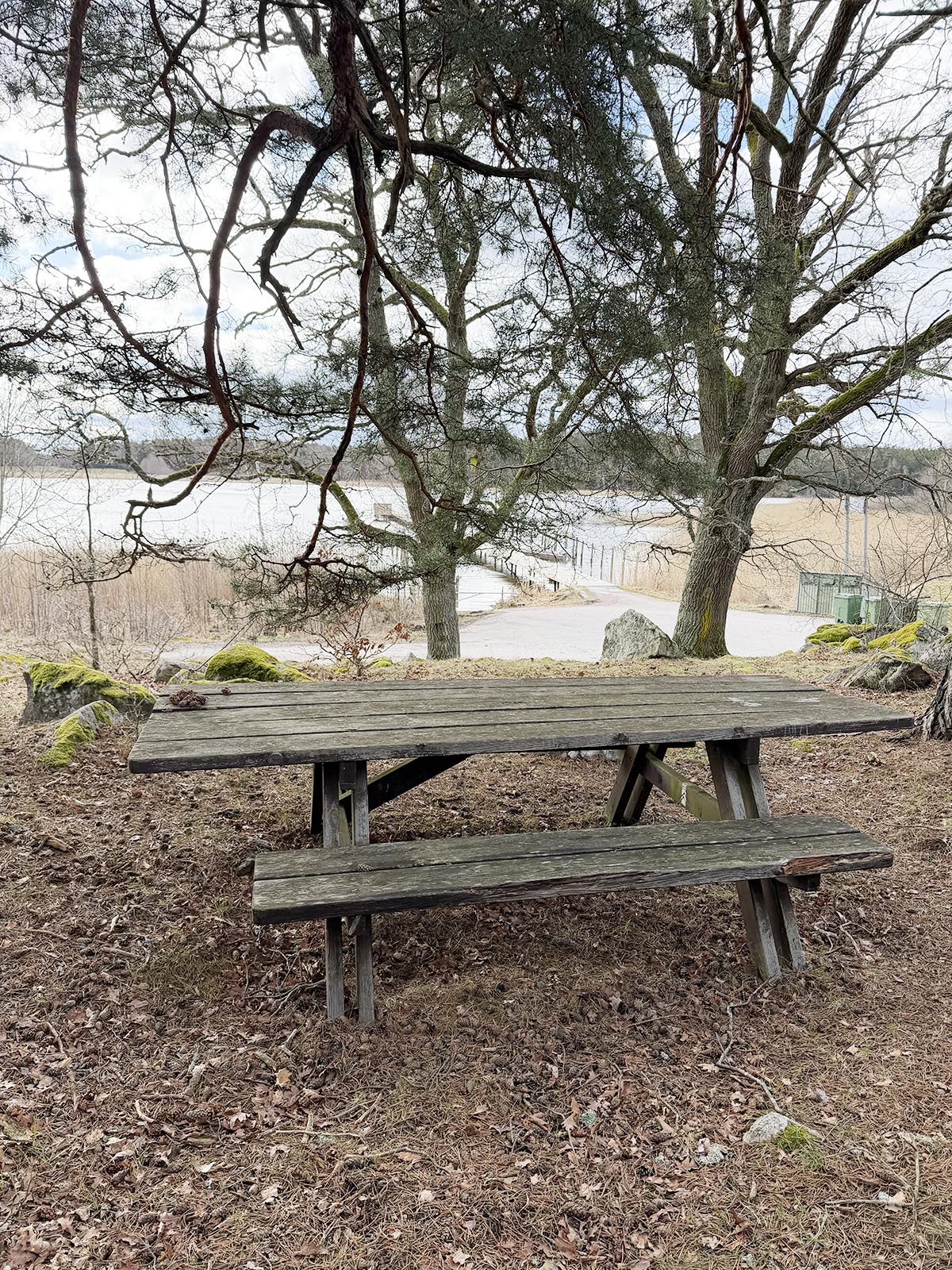 Trevlig utsikt härifrån. Kan tänka mig att det är skönt att sitta där sommartid i skuggan under träden.