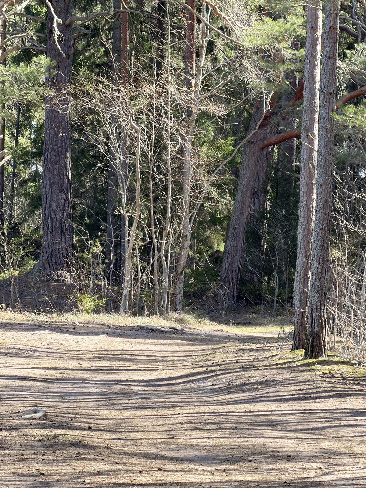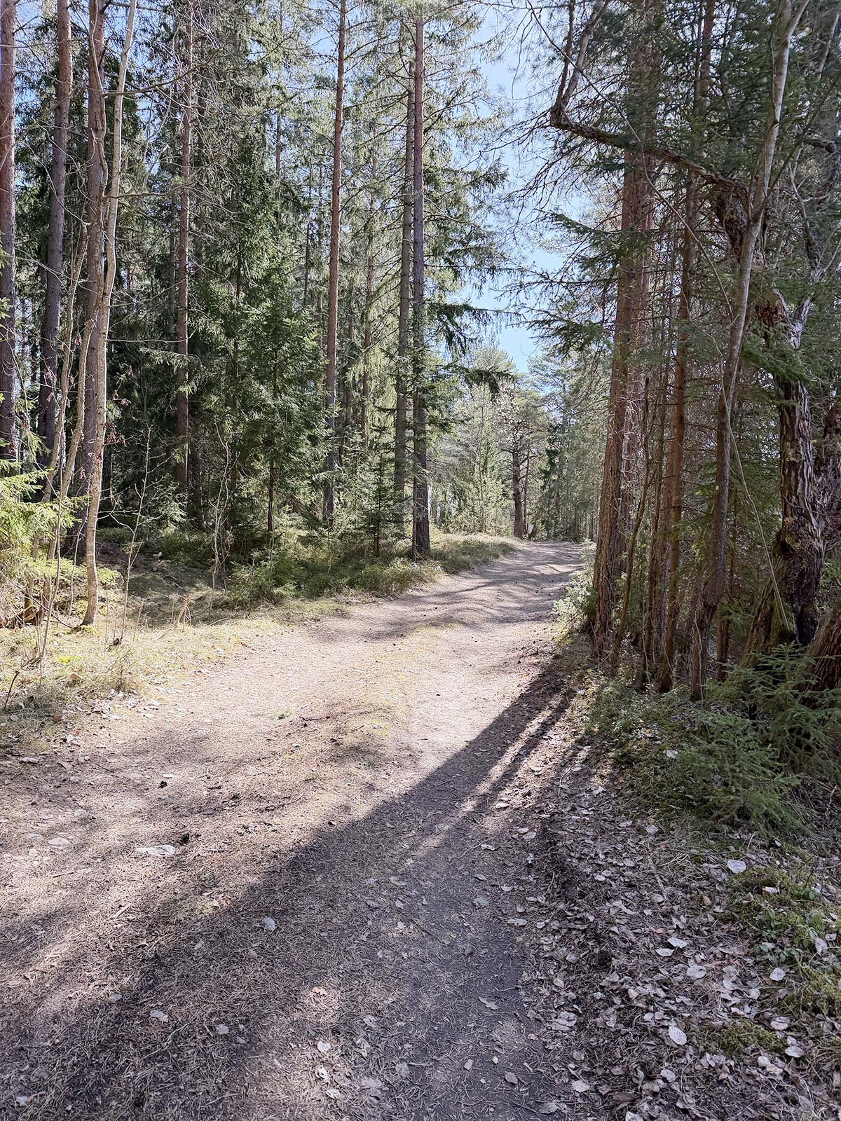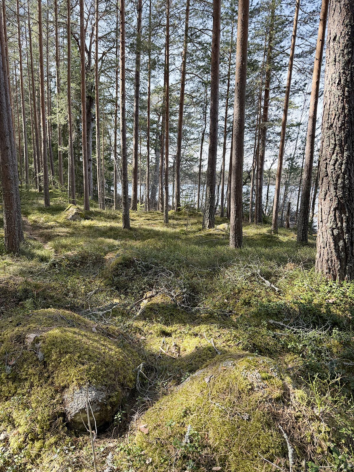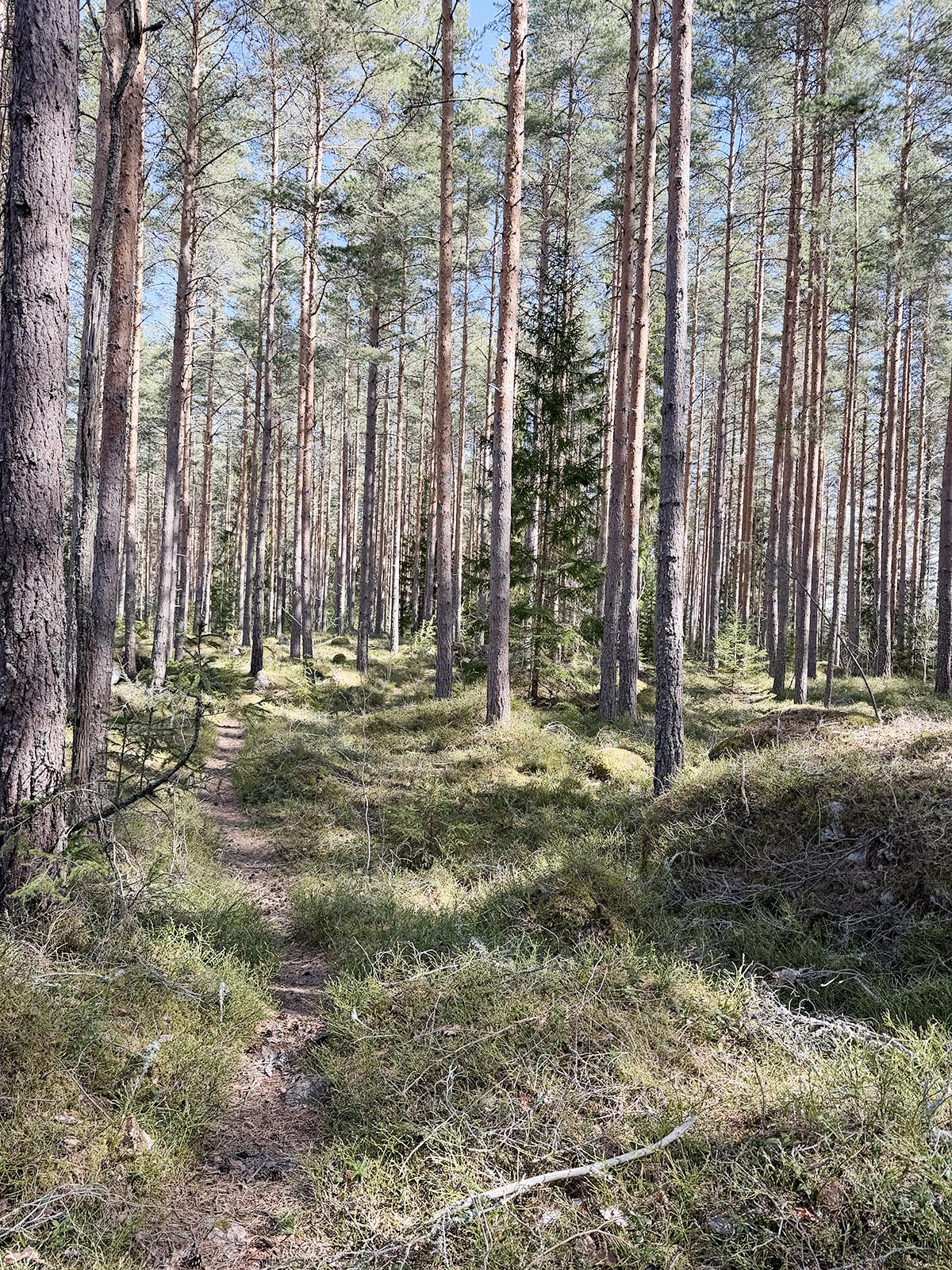 Jag trodde inte att det skulle gå att ta sig så långt på en skogspromenad där vi står eftersom det är ute på en udde. Men vi gjorde ett försök och en bit kom vi iallafall.