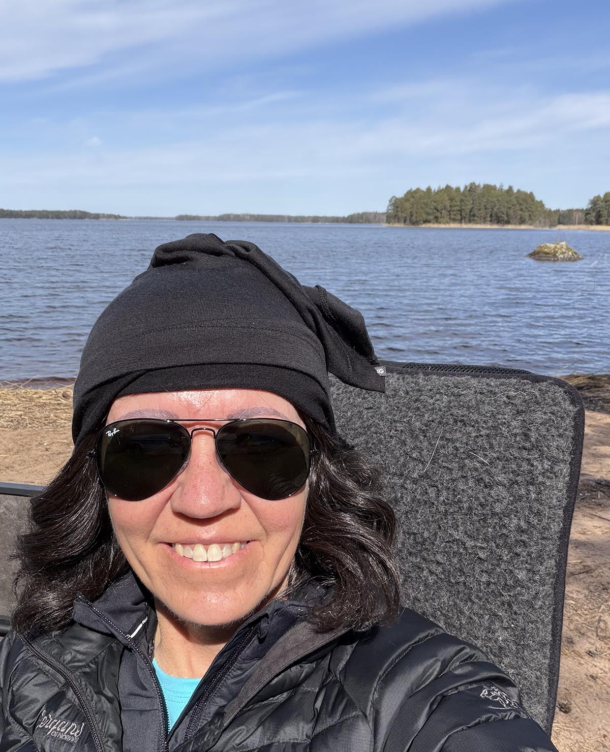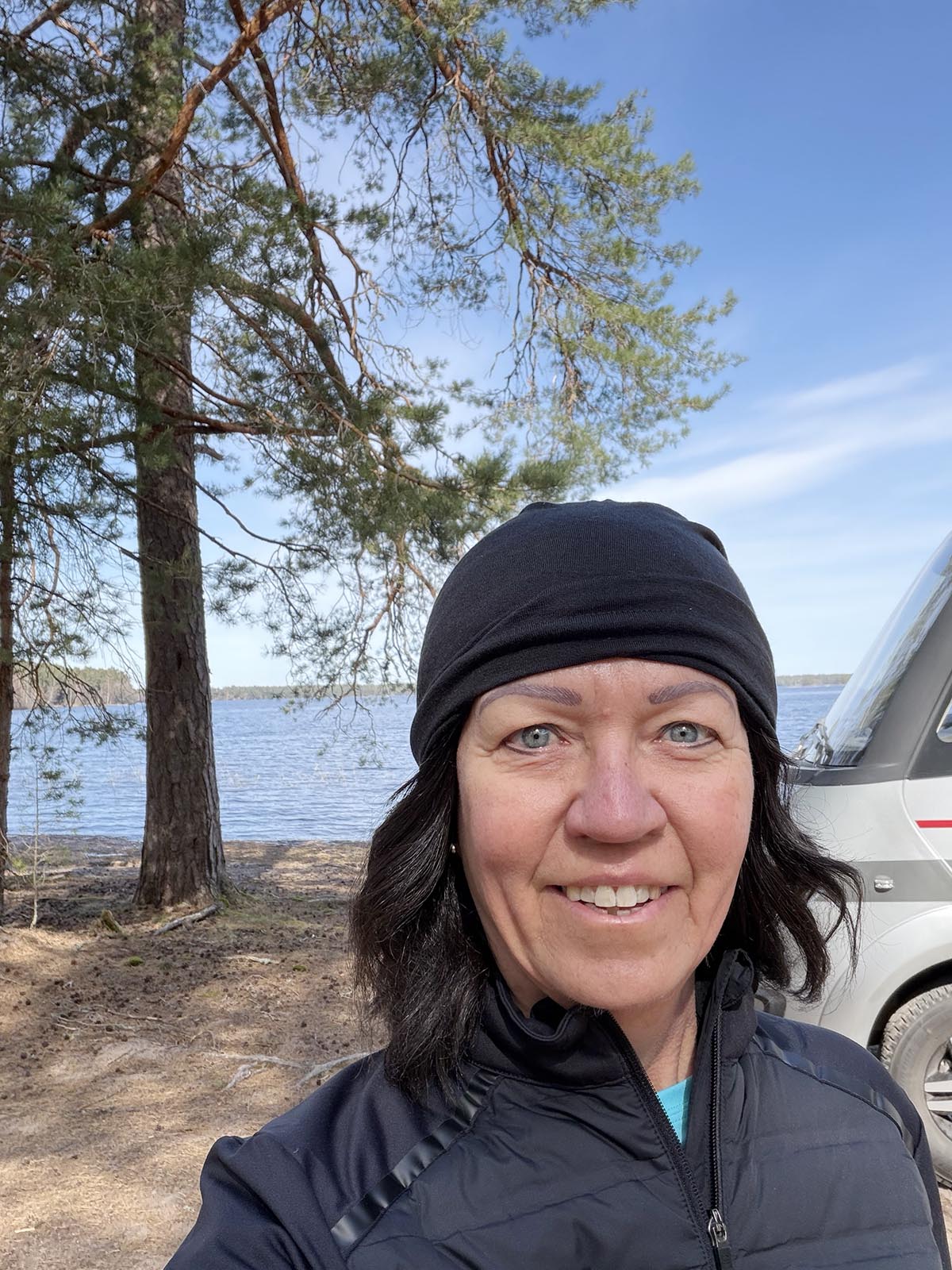 Jag fixade tillbehören och bar ut. Korv, bröd och alkoholfri öl är gott det. Varken speciellt nyttigt eller mättande, men gott och mysigt nån gång ibland. Särskilt i sån miljö. Vi satt en stund i solen tills den försvann bakom träden och det började bli lite för kallt. Middagen hade vi tänkt göra på Murikkan också, men tyckte det var för blåsigt och kallt. Vi hade sällskap inatt av en plåtis, men inga vi pratade med. Vi var inte ute samtidigt helt enkelt.