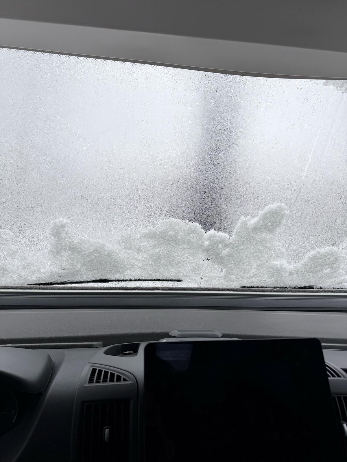 Morgonen efter vaknade vi till det här. Blä! Men det hör ju till. Det blev en bra anledning till att stanna inne i husbilen och koppla av. De andra två bilarna åkte på morgonen. Eftersom det är lågsäsong så valde vi att gå mot reglerna om 24 timmar. Vi tänkte att kommunen vill ha 150 kr till för en ensam bil än noll kronor bara för att man inte får stanna längre. Så vi busade till det lite och stannade och betalade.