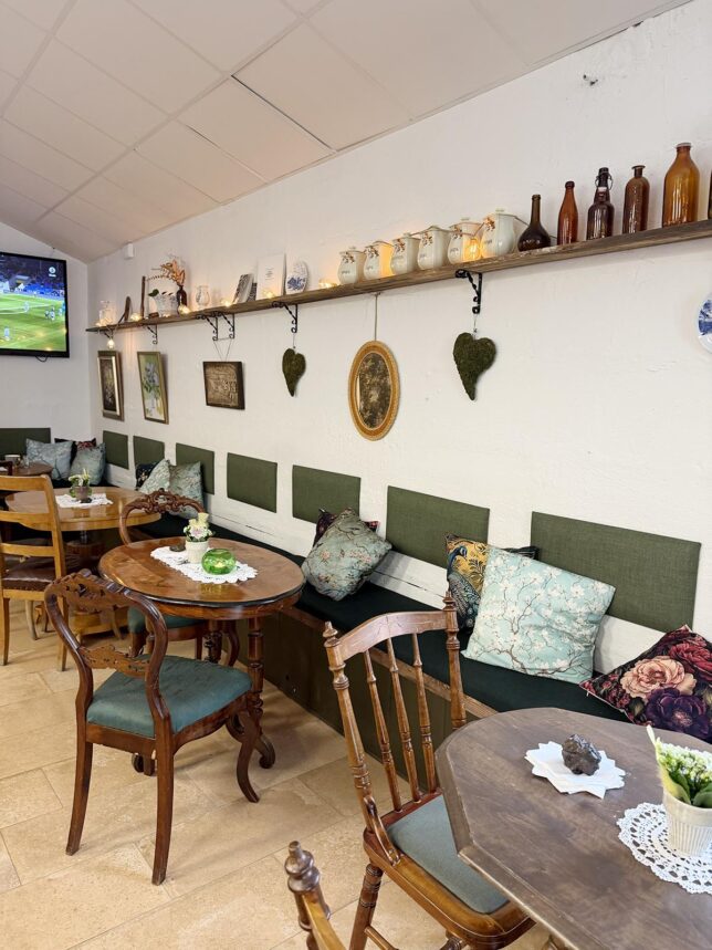 Där ville vi såklart titta in. Väldigt trevlligt inrett café mötte oss först.