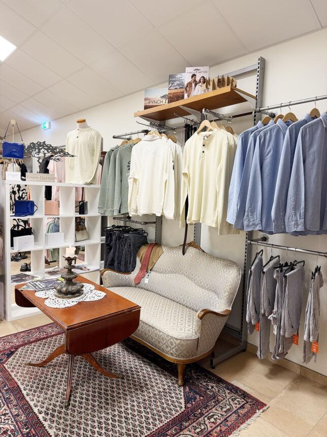 Gick man rakt igenom så hamnade man i klädbutiken. En massa oväntat fina kläder för både herr och dam. Jodå saker till både Andreas och mig fick följa med därifrån. Och vi tog sen en fika där också. Även om vi har allt i mat- och fikaväg med oss i husbilen så gillar vi att gynna lokala entreprenörer när vi är ute.