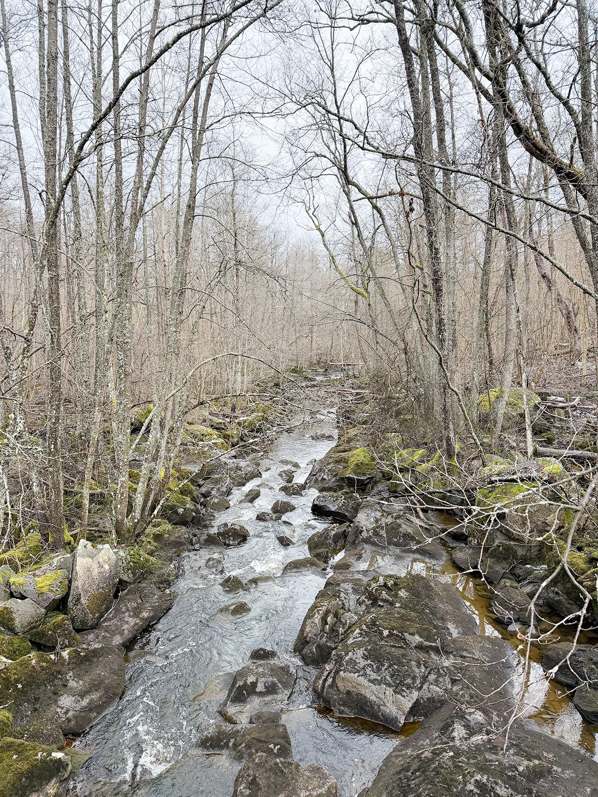 Vi fortsatte vår promenad och gick över en lång spång längs bäcken.